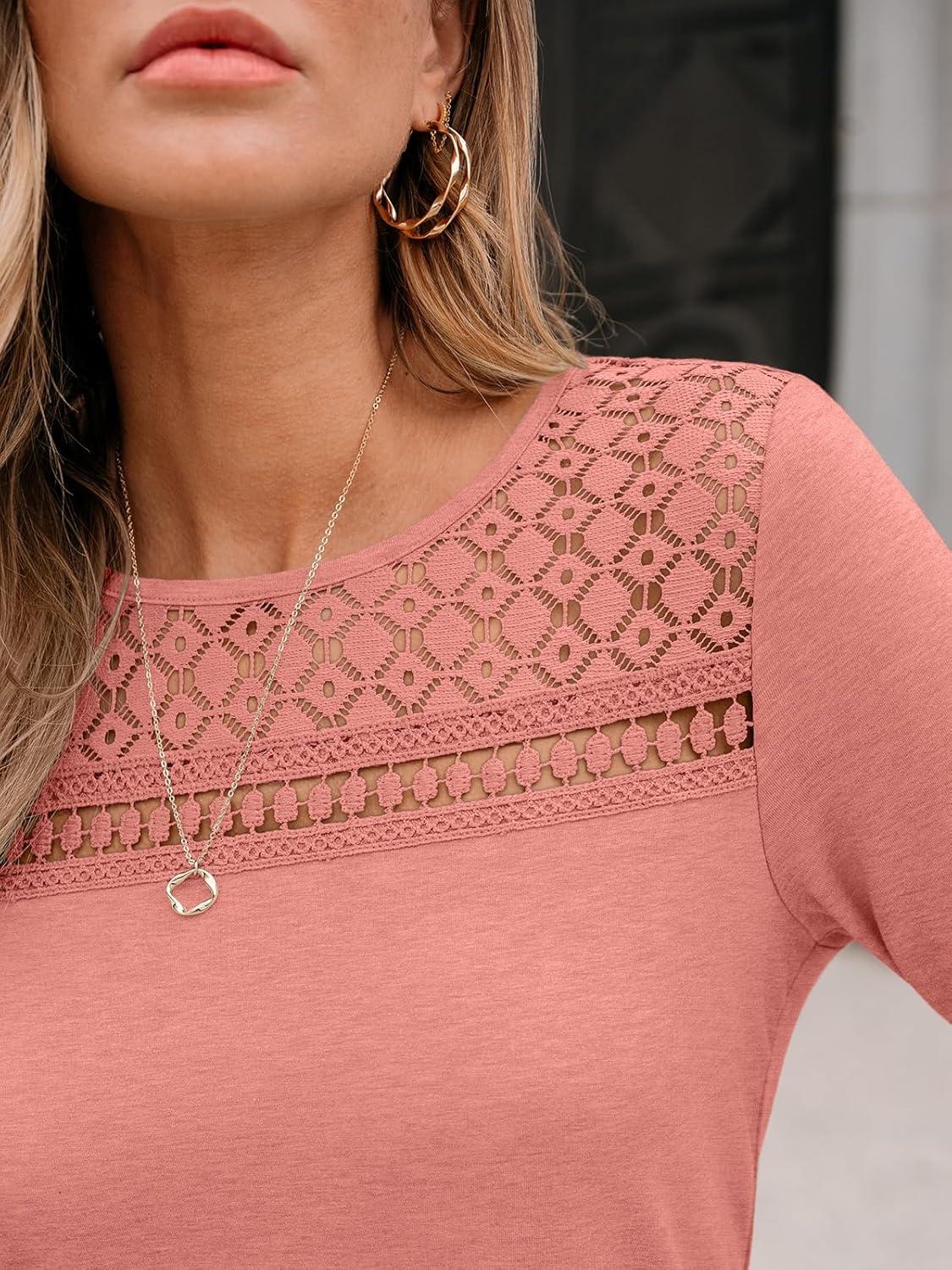 AUTOMET 3/4 Length Sleeve Womens Tops Lace Business Dressy Casual Blouses Spring Summer Fall Trendy Cute Work T Shirts(Pink)