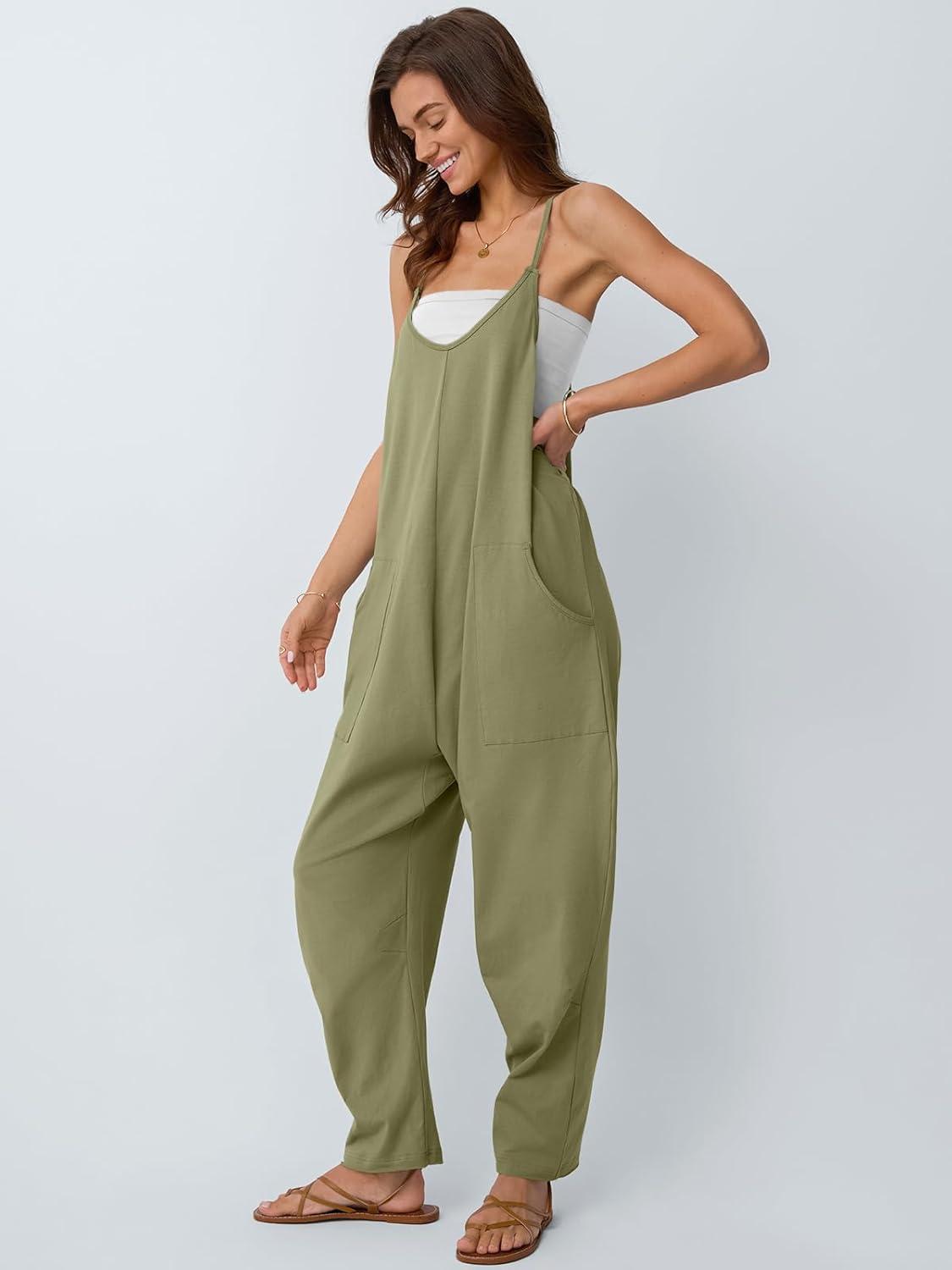 AUTOMET Jumpsuits for Women Casual Summer Outfits Rompers Comfy Beach Vacation Trendy Overalls Jumpers Fashion Clothes 2025(Armygreen)