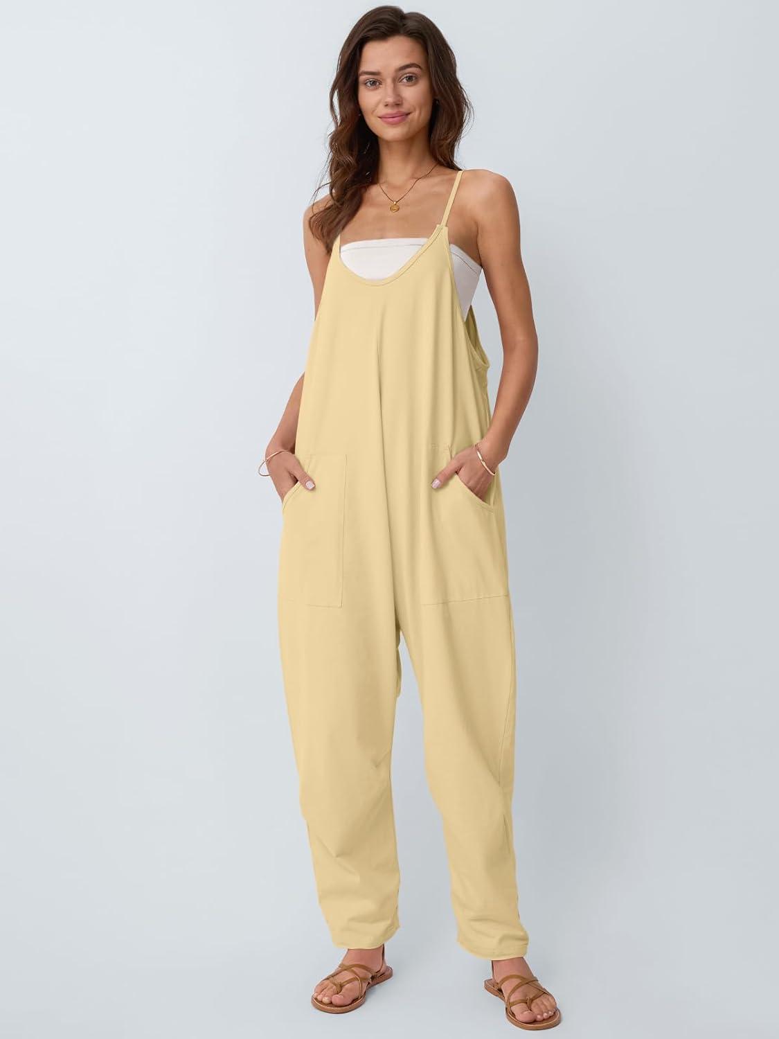 AUTOMET Jumpsuits for Women Casual Summer Outfits Rompers Comfy Beach Vacation Trendy Overalls Jumpers Fashion Clothes 2025(Beigeyellow)