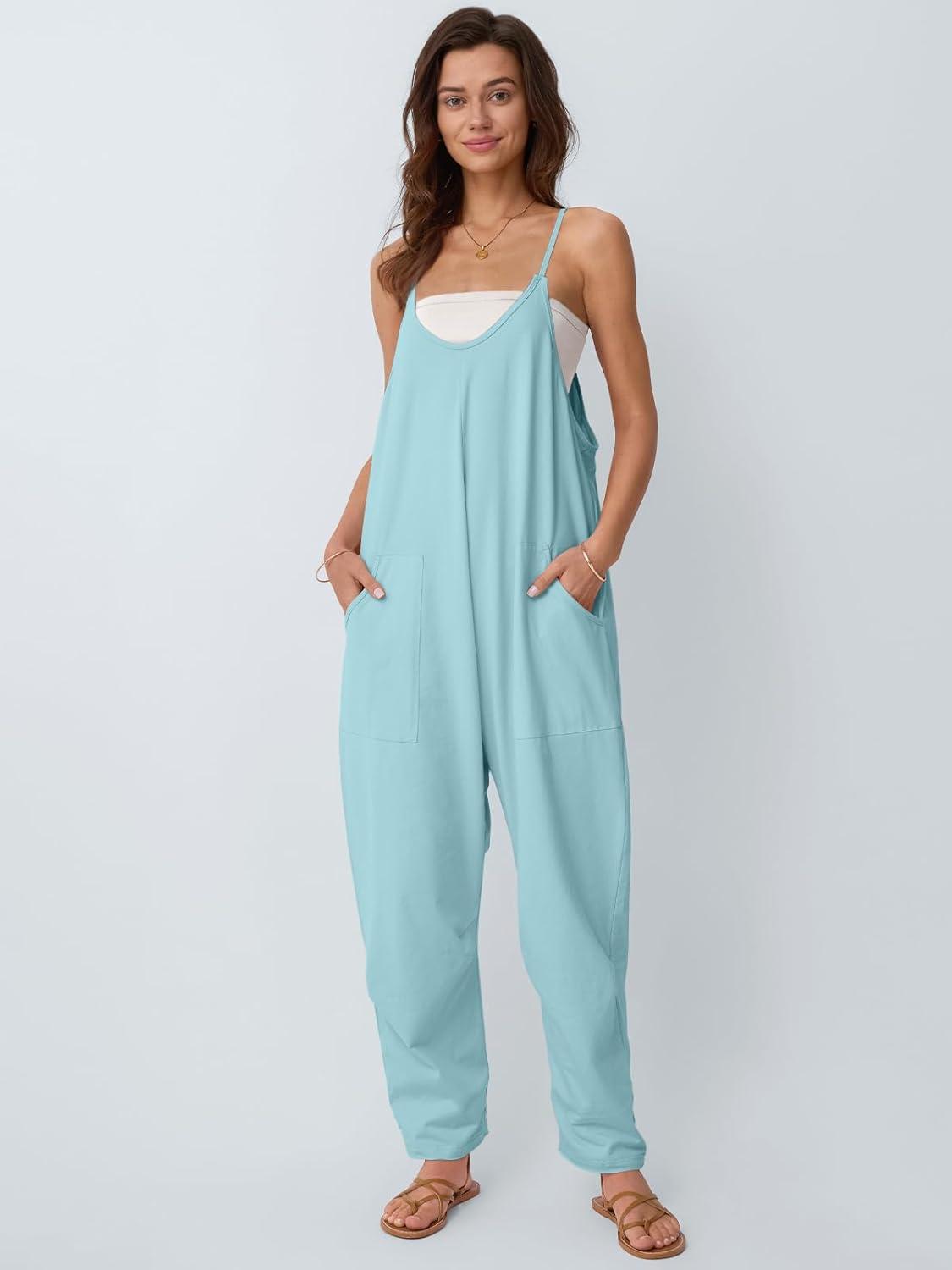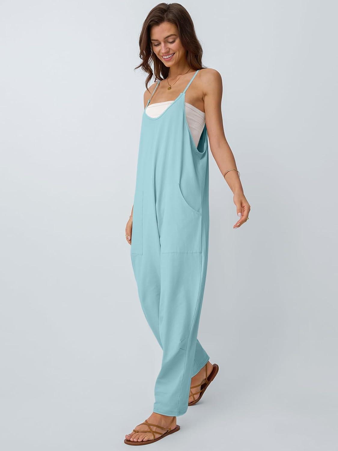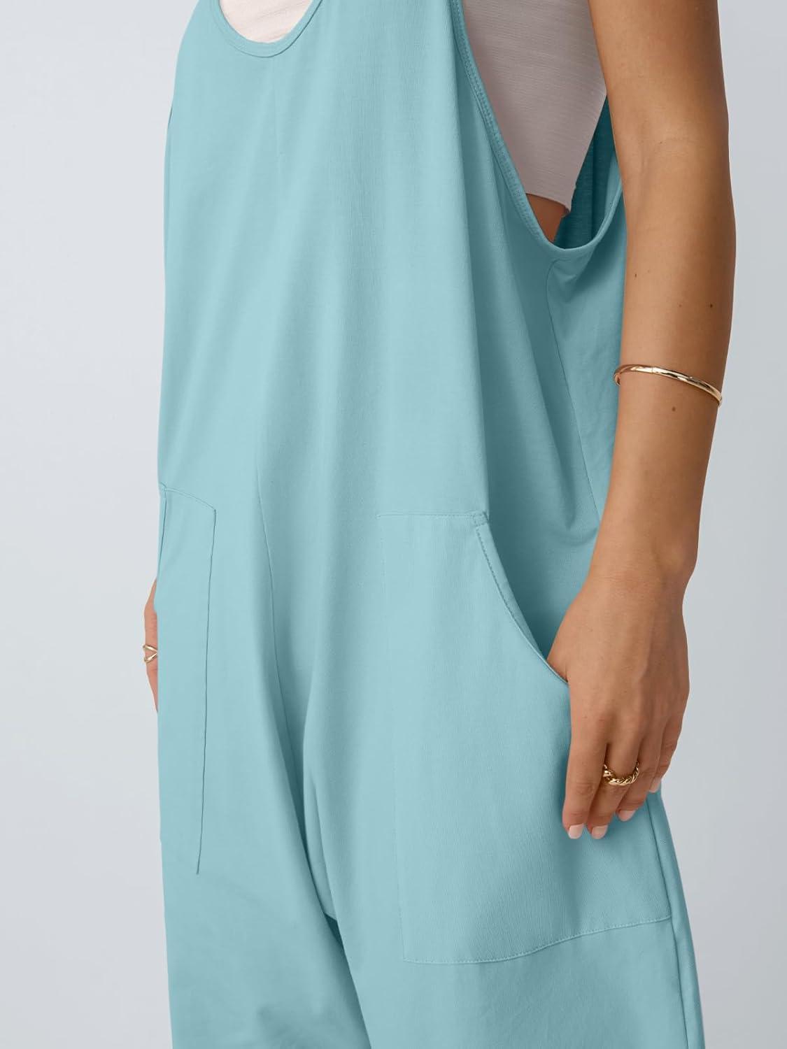 AUTOMET Jumpsuits for Women Casual Summer Outfits Rompers Comfy Beach Vacation Trendy Overalls Jumpers Fashion Clothes 2025(Cyan)