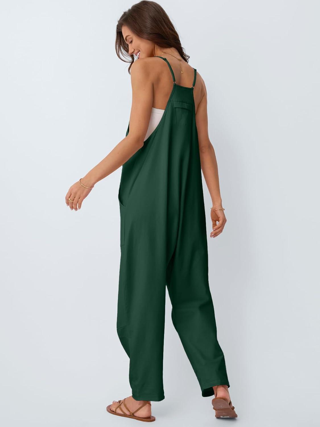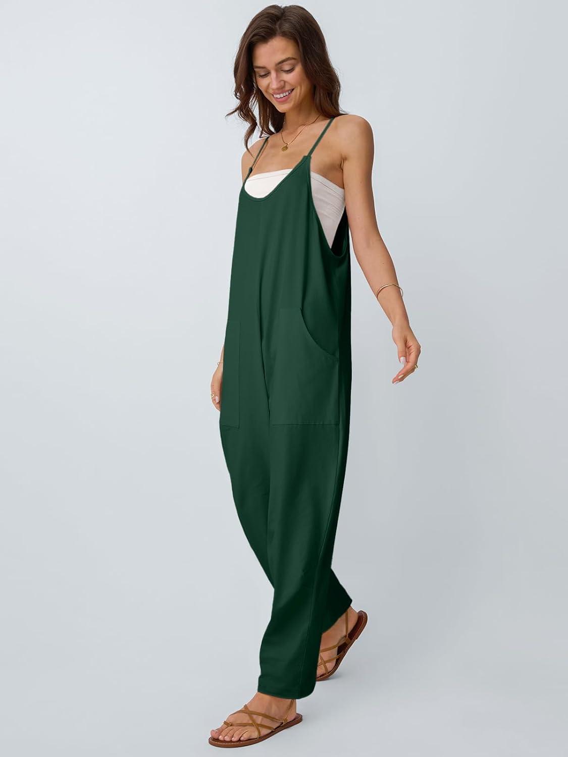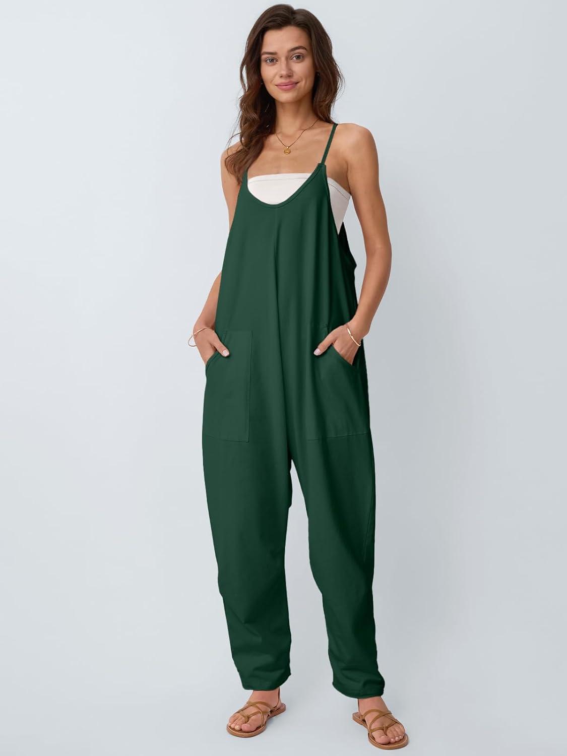AUTOMET Jumpsuits for Women Casual Summer Outfits Rompers Comfy Beach Vacation Trendy Overalls Jumpers Fashion Clothes 2025(Darkgreen)