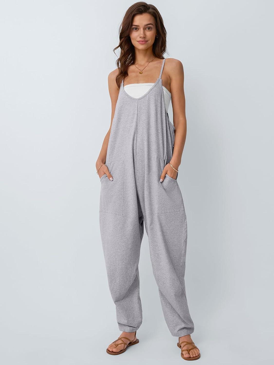 AUTOMET Jumpsuits for Women Casual Summer Outfits Rompers Comfy Beach Vacation Trendy Overalls Jumpers Fashion Clothes 2025(Gray)