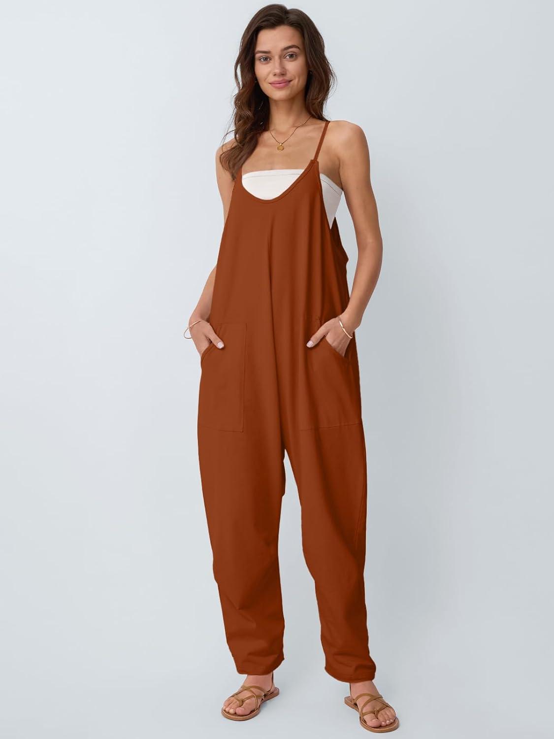 AUTOMET Jumpsuits for Women Casual Summer Outfits Rompers Comfy Beach Vacation Trendy Overalls Jumpers Fashion Clothes 2025(Orangebrown)