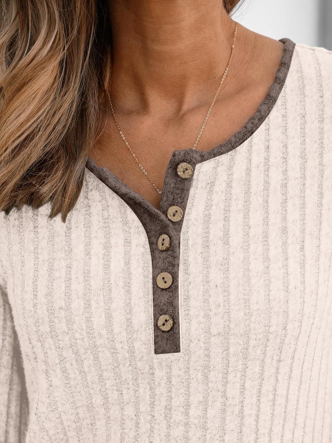 AUTOMET Long Sleeve Henley Shirts Women’s Business Casual Lightweight Tunic Sweater Tops(Apricot Coffee)