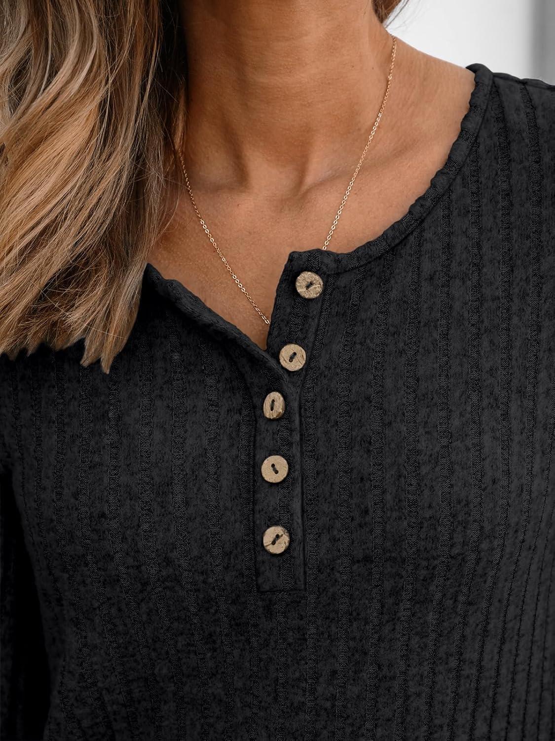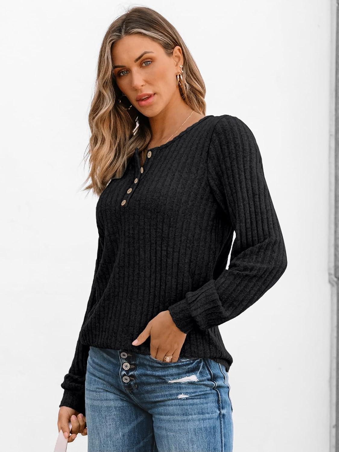 AUTOMET Long Sleeve Henley Shirts Women’s Business Casual Lightweight Tunic Sweater Tops(Black)
