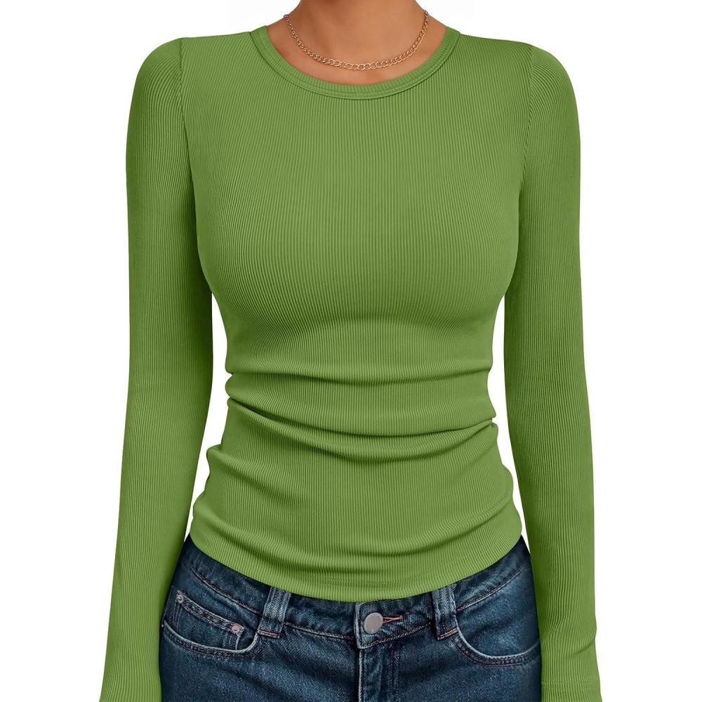 AUTOMET Long Sleeve Shirts Blouses Fall Fashion Ribbed Basic Tops Winter Clothes(Avocado Green)