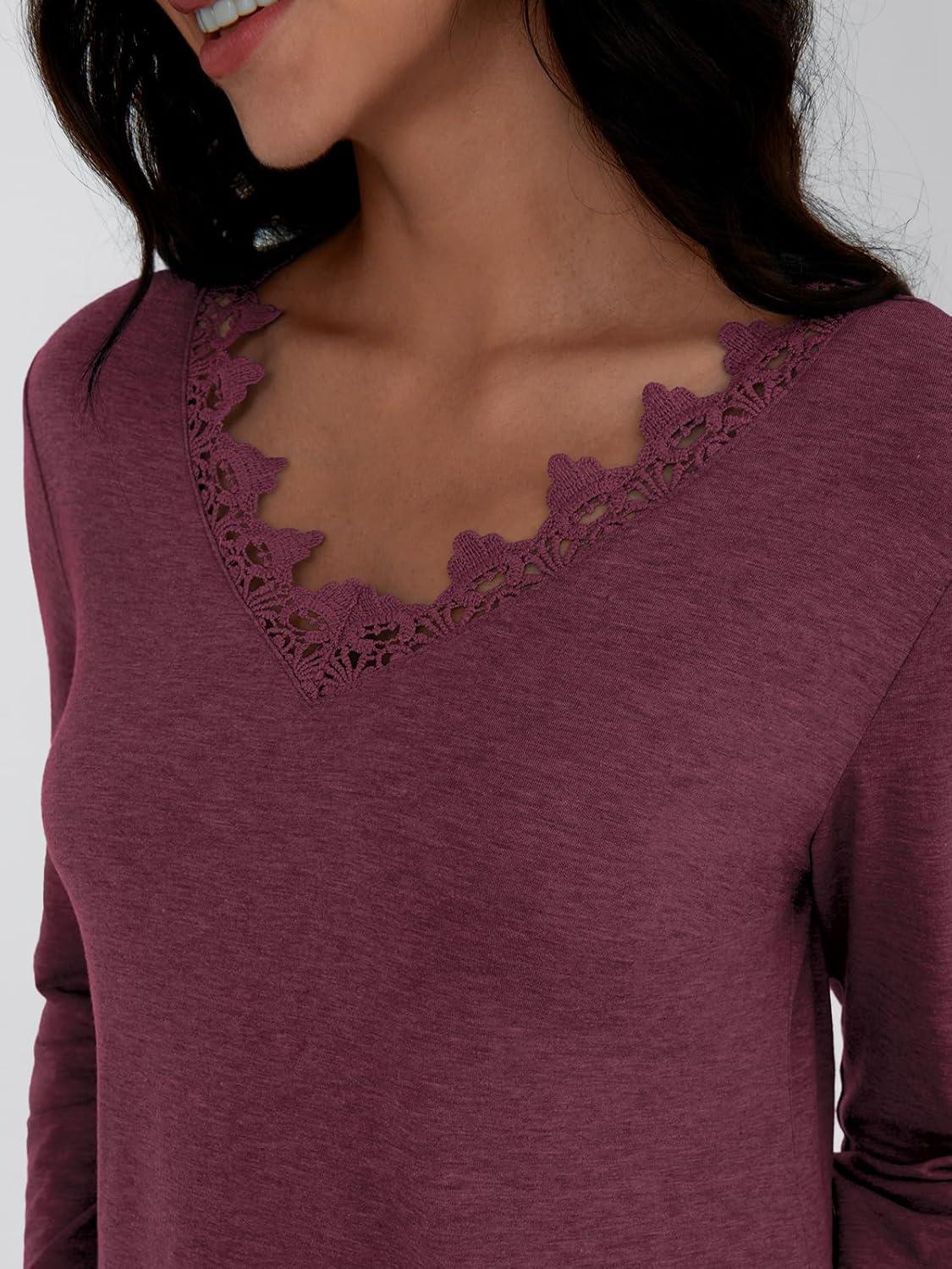AUTOMET Long Sleeve Shirts for Women 2025 Fall Fashion Lace V Neck Loose Fit Casual Tops Trendy T Shirts Outfits Clothes