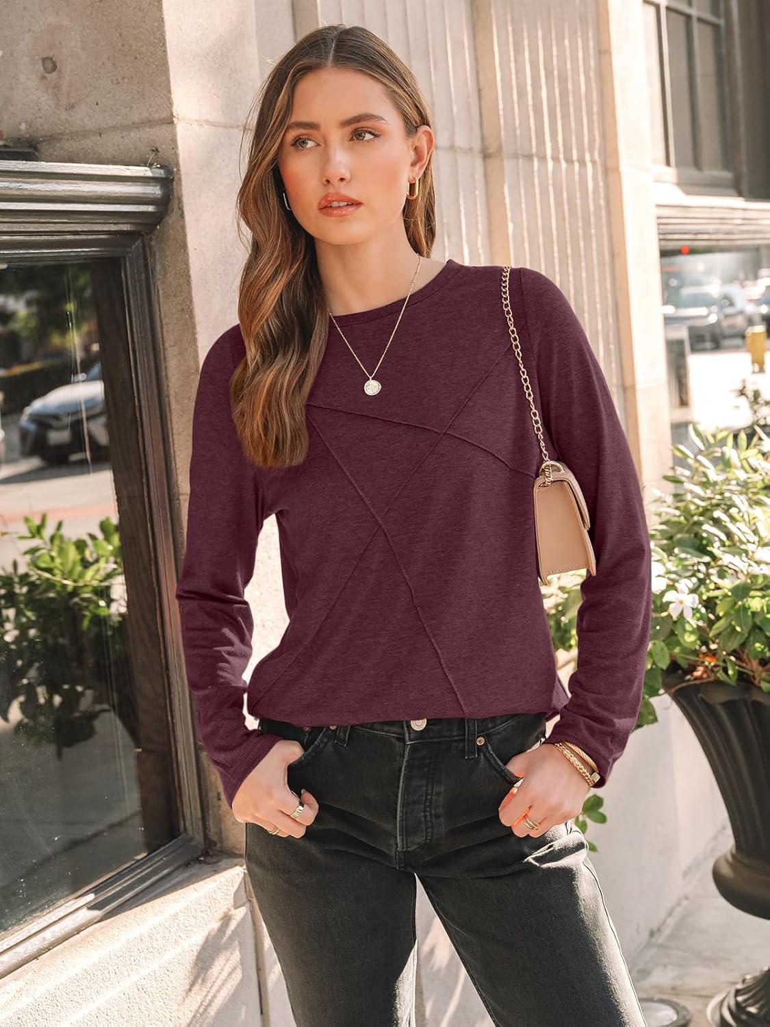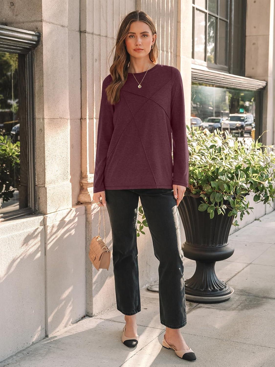 AUTOMET Long Sleeve Shirts for Women Basic Business Casual Tops Work Clothes 2025 Fall Fashion Outfits(Wine Red)