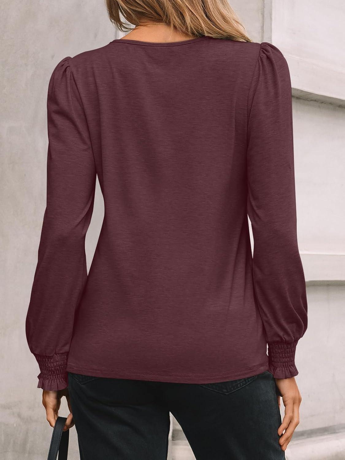 Be the first to review “AUTOMET Long Sleeve Shirts for Women Business Casual Tops Dressy Blouses with Smocked Cuffs(Wine Red)”