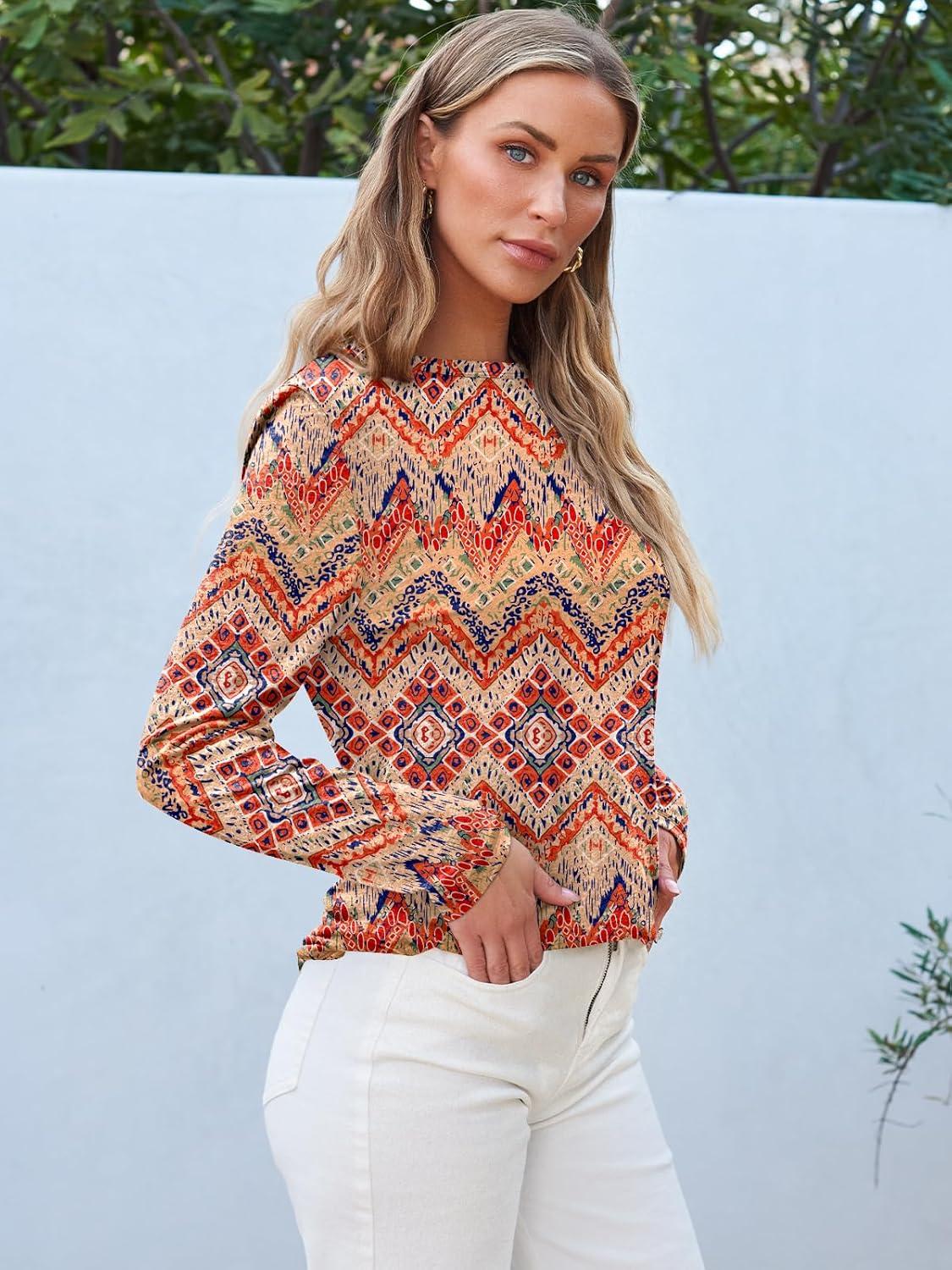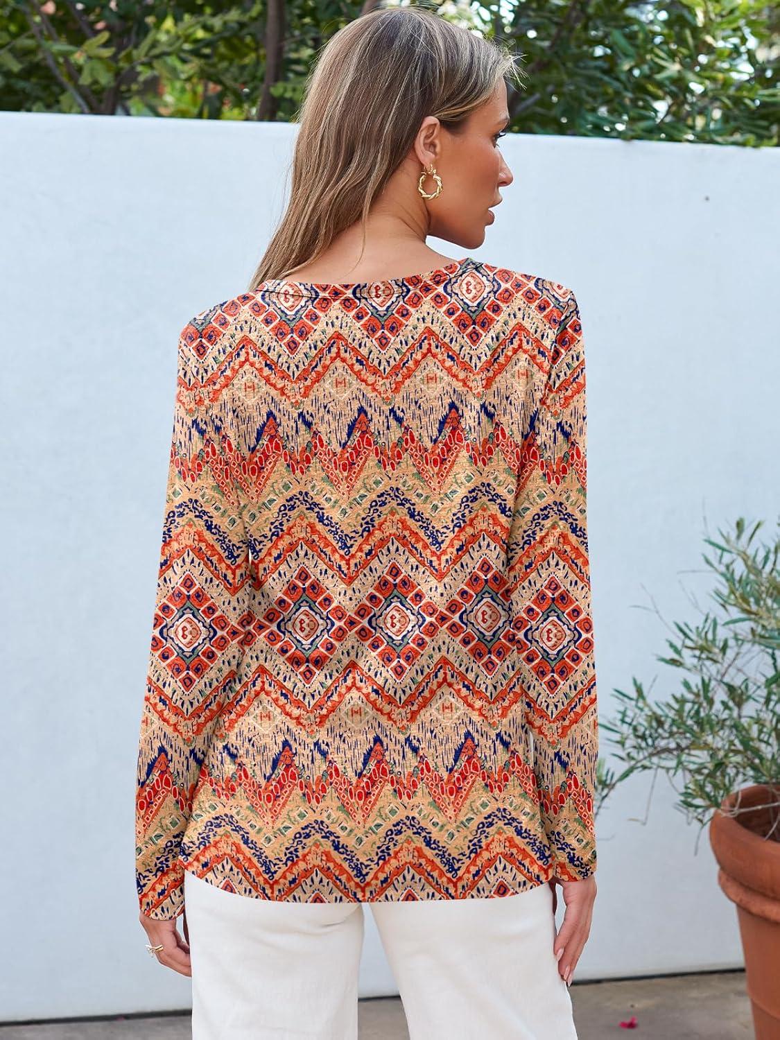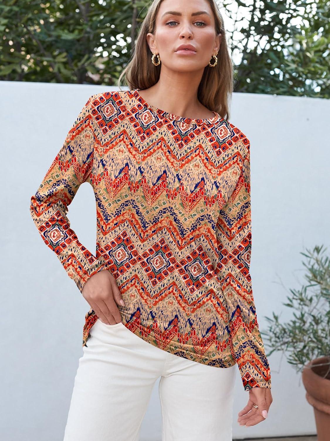 AUTOMET Long Sleeve Shirts for Women Business Casual Tops Fall Fashion Clothes Workout Plus Size Teacher Winter Outfits 2025(Bohoorange)
