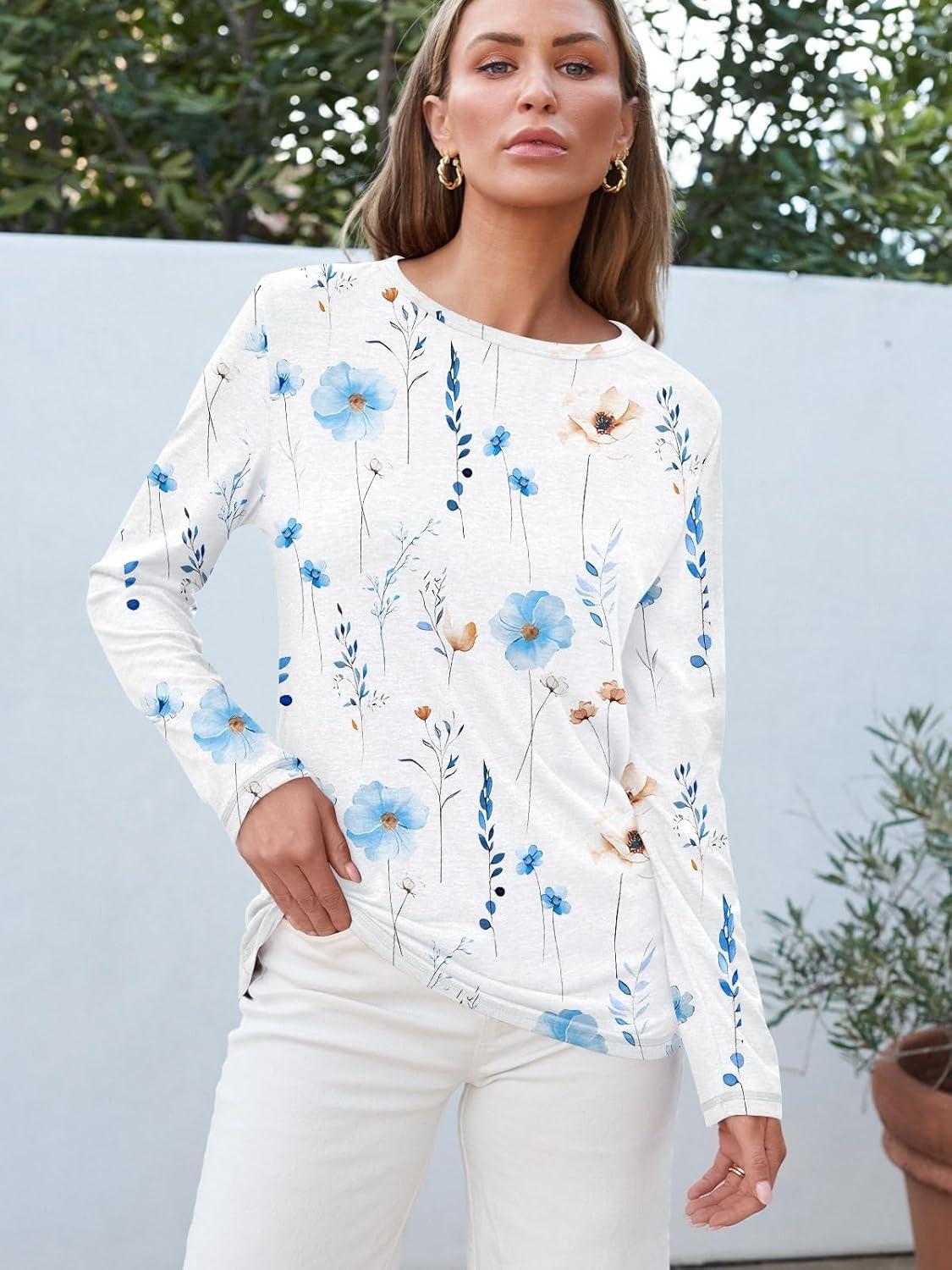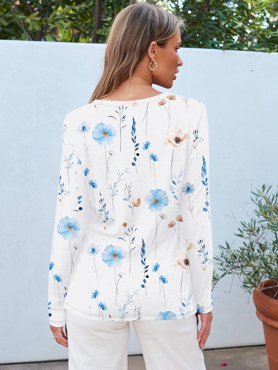 AUTOMET Long Sleeve Shirts for Women Business Casual Tops Fall Fashion Clothes Workout Plus Size Teacher Winter Outfits 2025(Flowerwhite)
