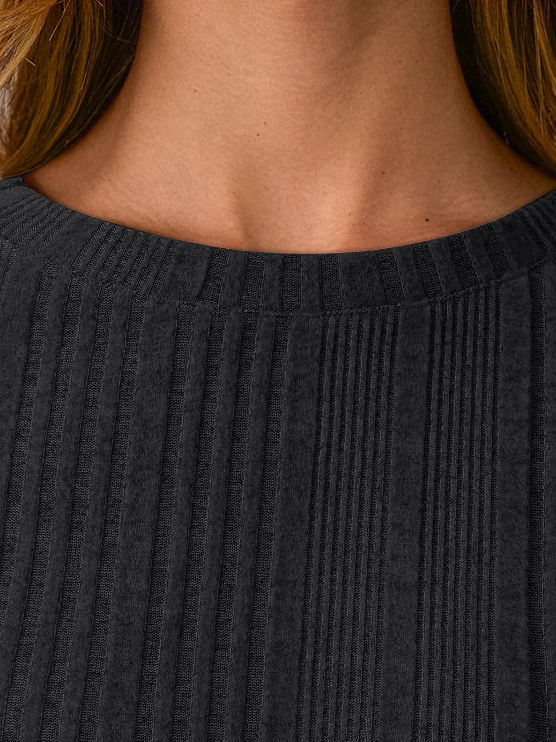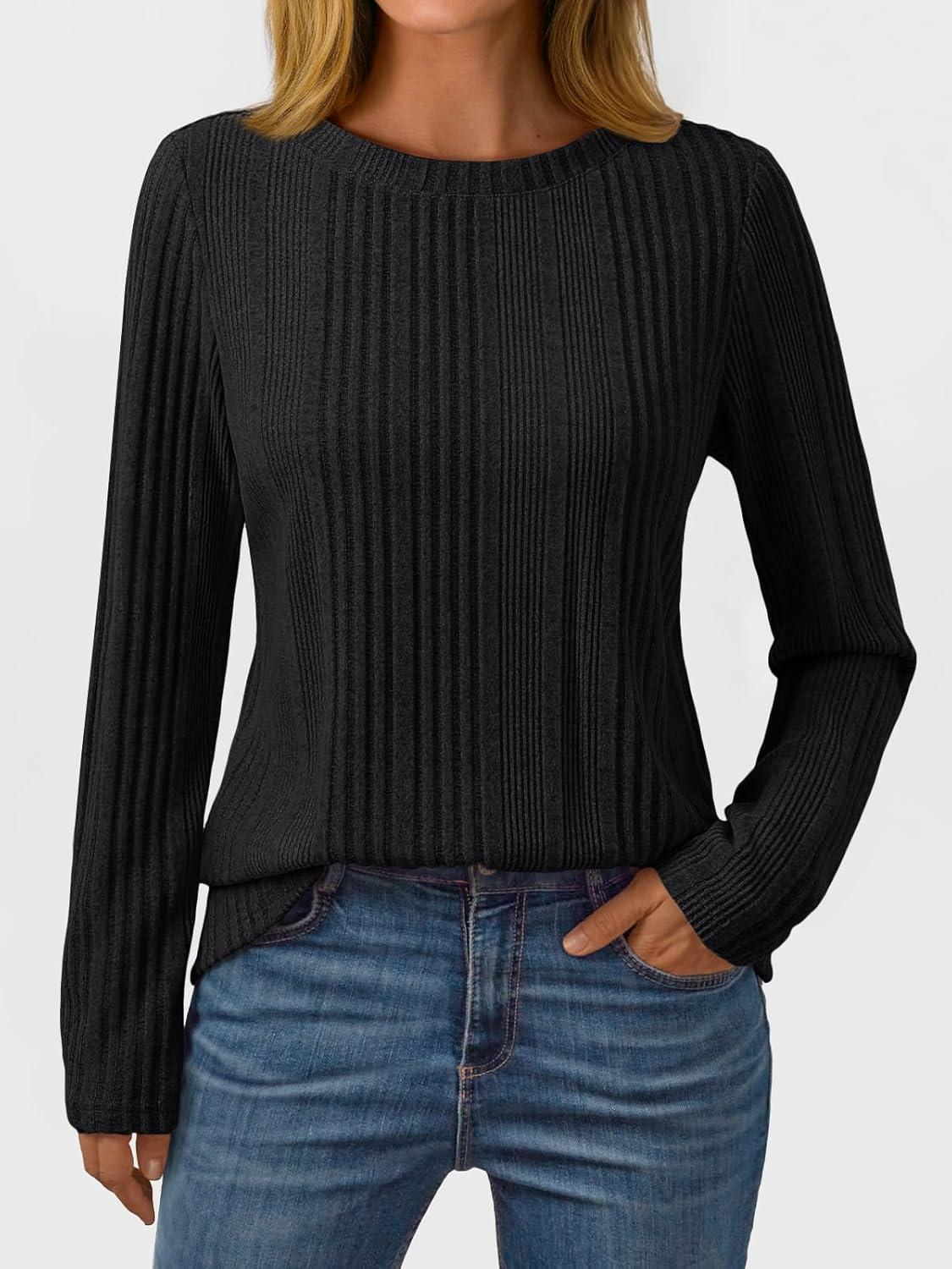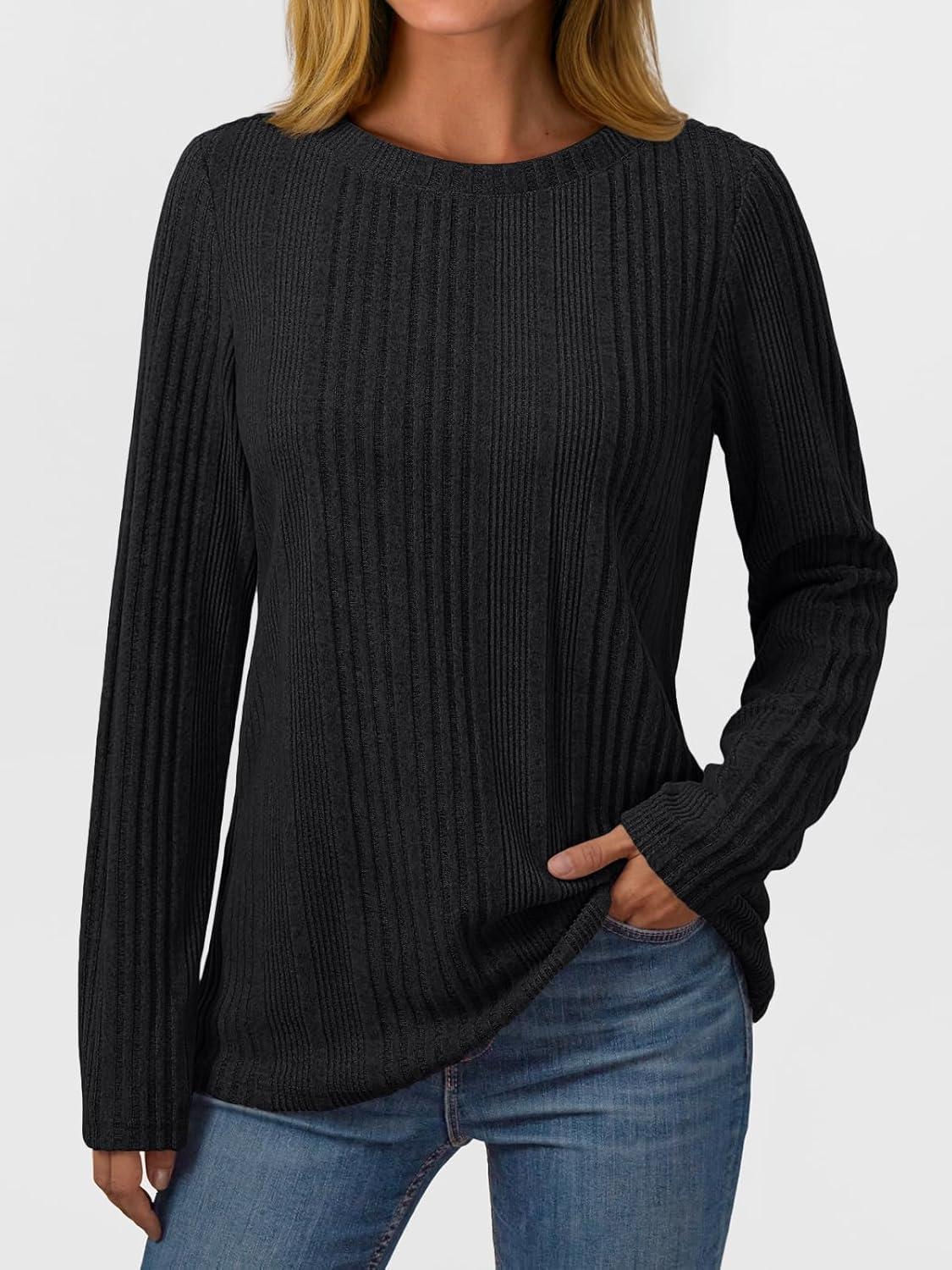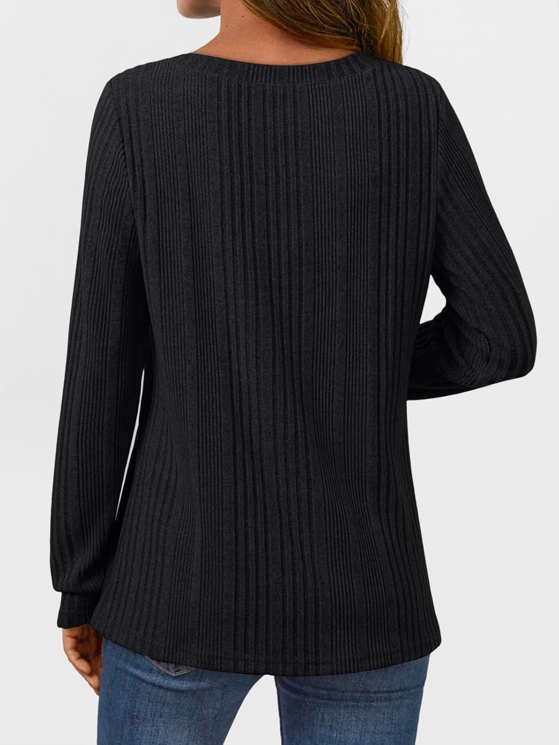 AUTOMET Long Sleeve Shirts for Women Casual Tunic Tops Loose Fit Lightweight Crew Neck Sweater Clothes 2025(Black)