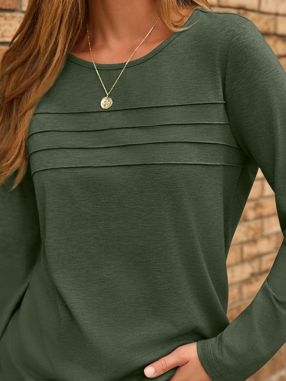 AUTOMET Long Sleeve Shirts for Women Pleated Dressy Casual Business Blouses Trendy Fashion Tunic Basic Tops(Army Green)