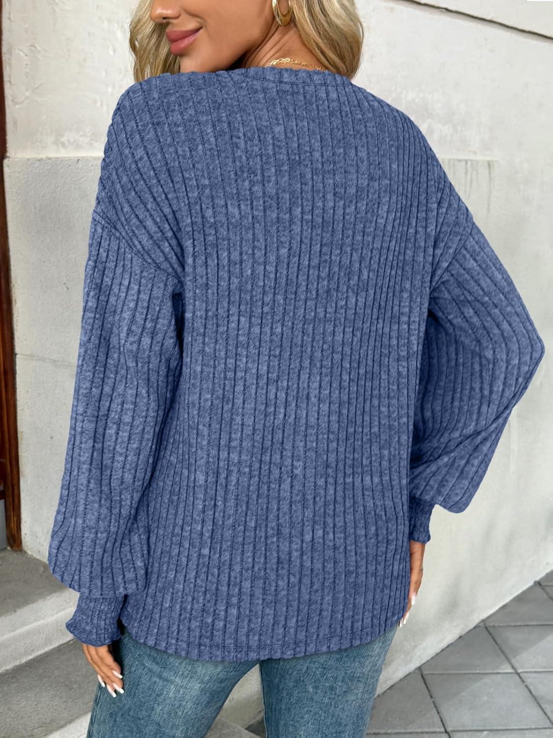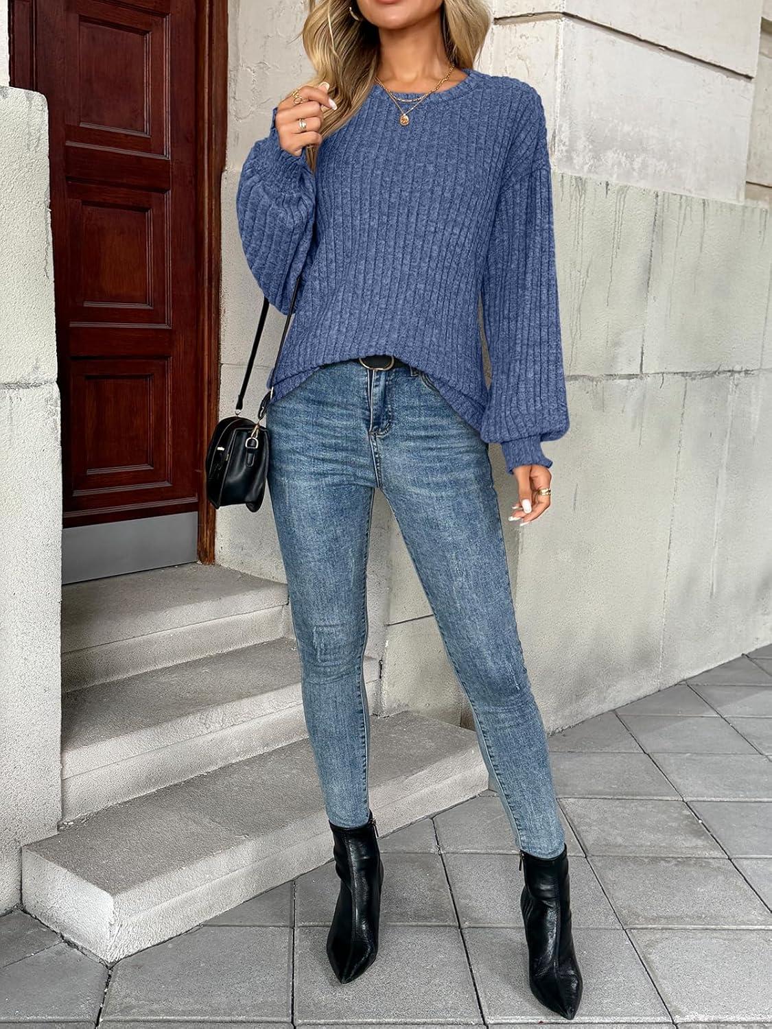 AUTOMET Long Sleeve Shirts for Women Tops Fall Fashion Outfits 2025 Crewneck Sweaters Trendy Blouse Dressy Casual(Blue)