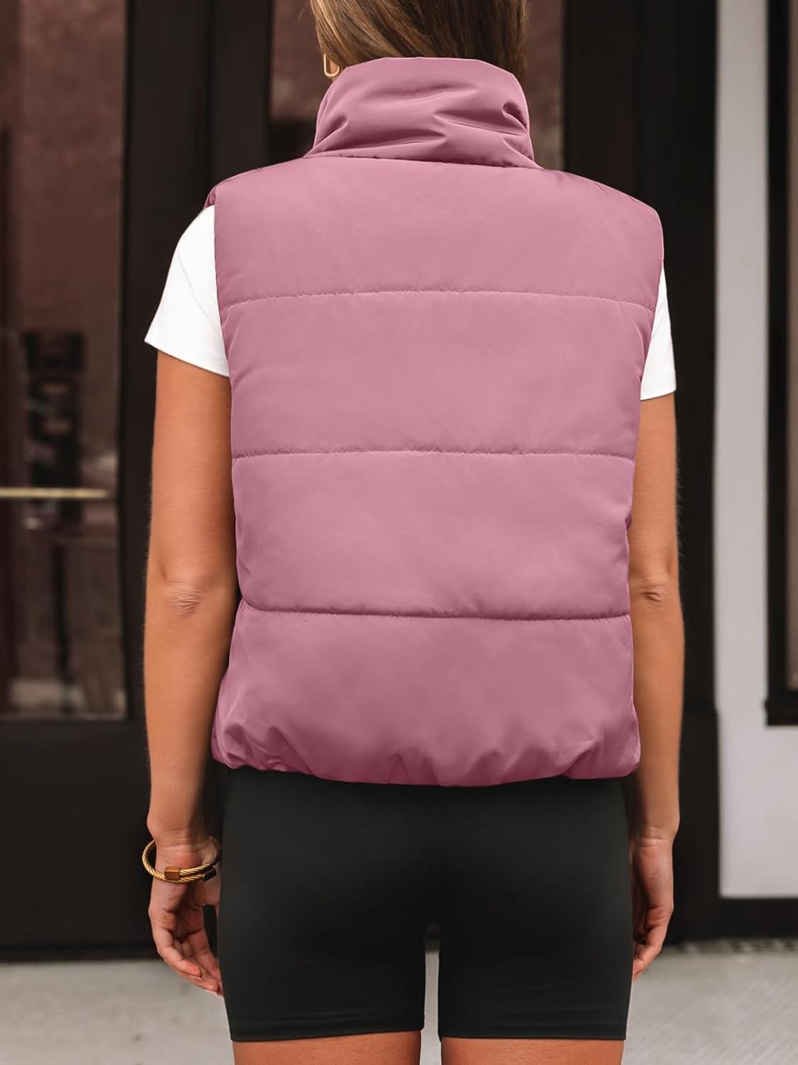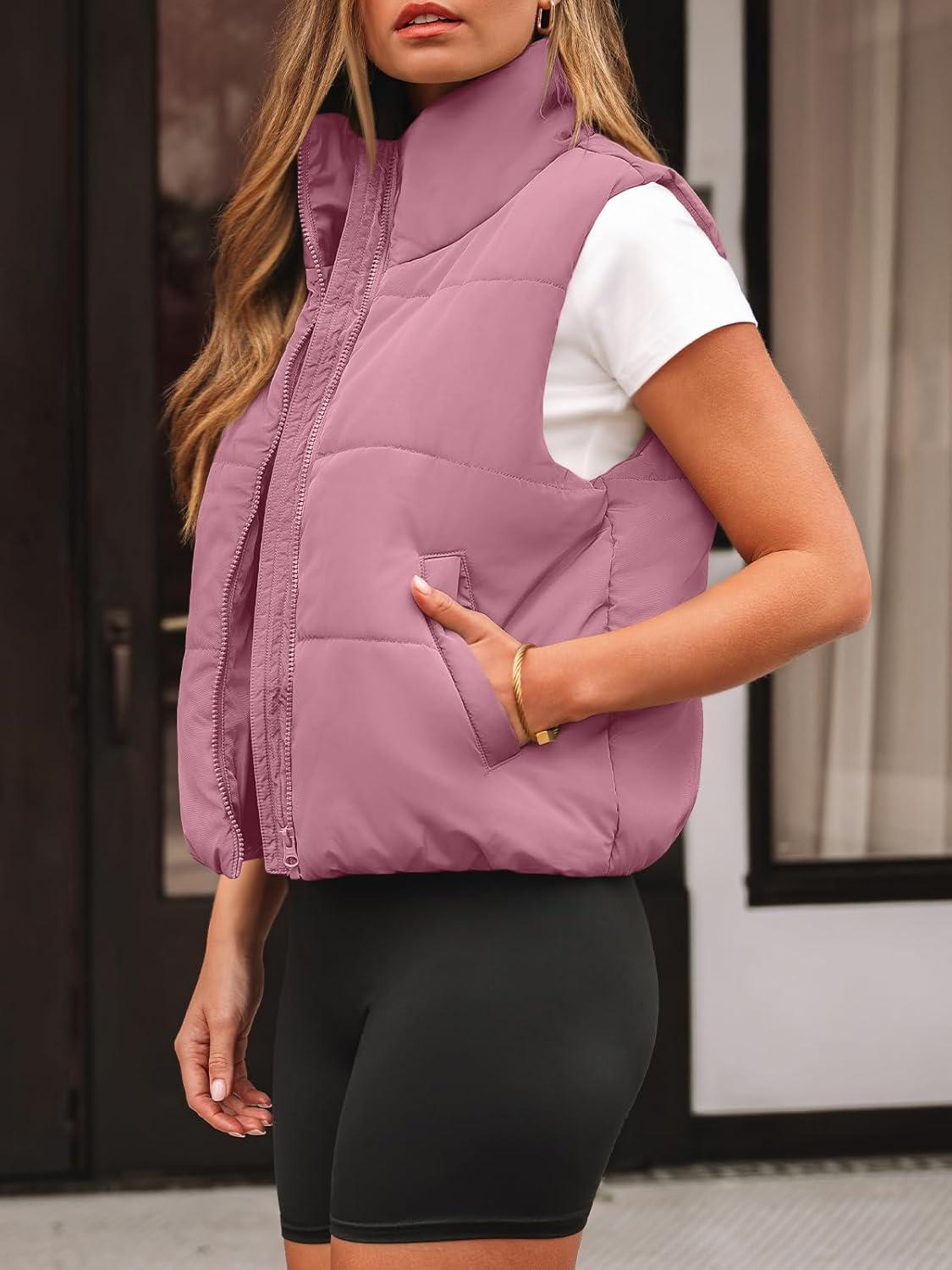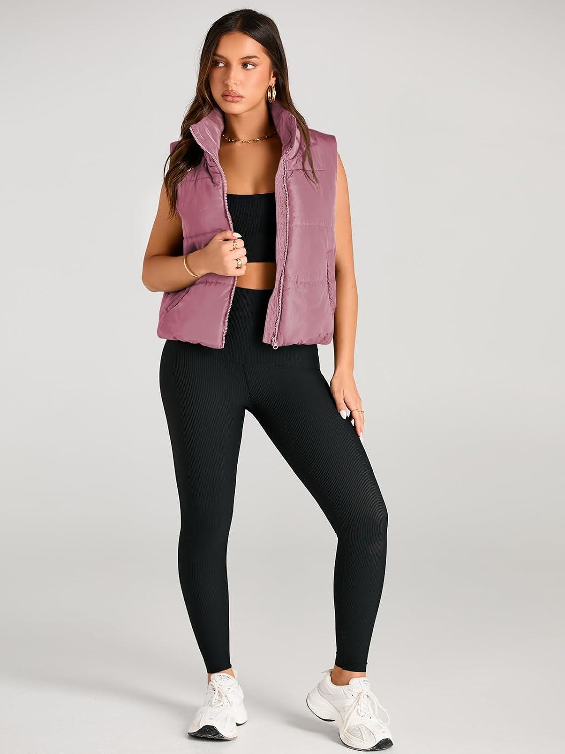 AUTOMET Puffer Vest Women Sleeveless Winter Clothing Cropped Outerwear Warm Puffy Fall Outfits Spring Fashion Vest Tops 2025(Darkpink)