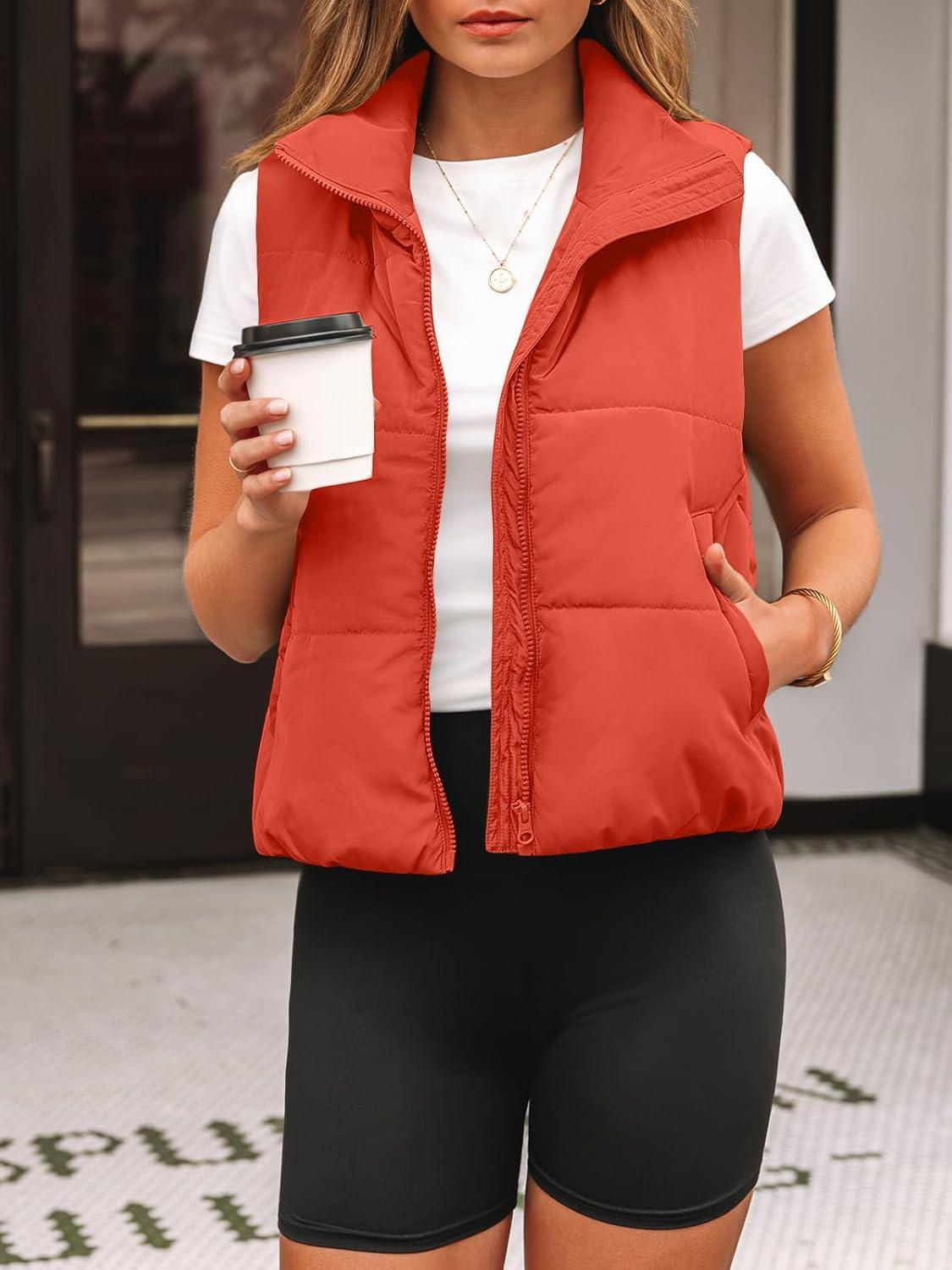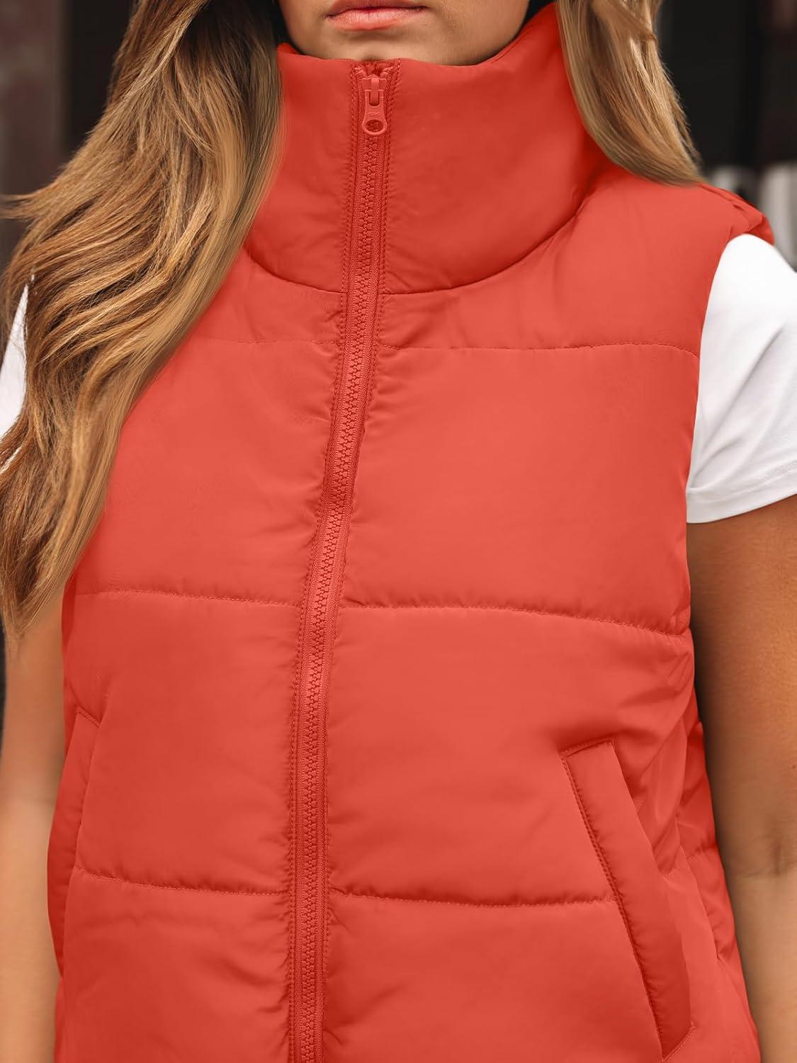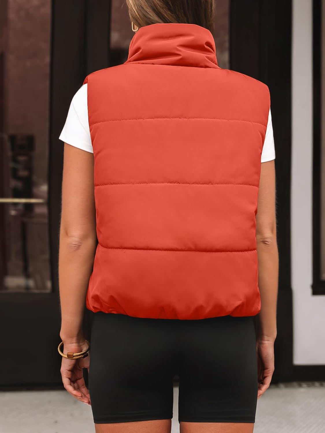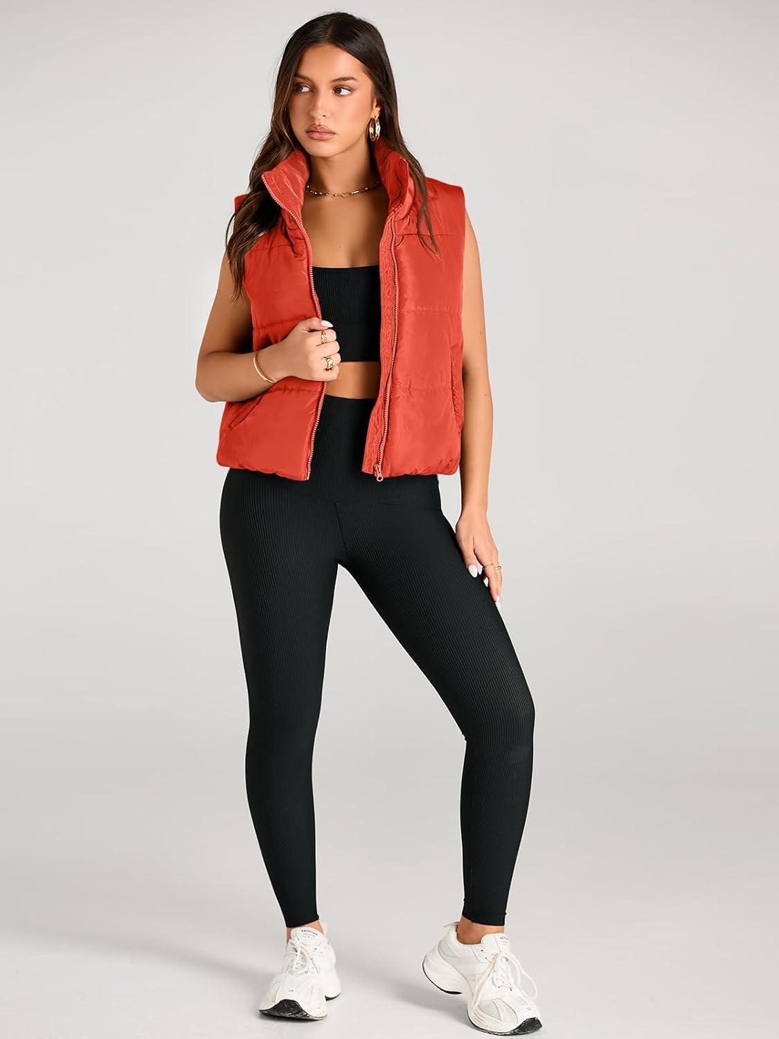 AUTOMET Puffer Vest Women Sleeveless Winter Clothing Cropped Outerwear Warm Puffy Fall Outfits Spring Fashion Vest Tops 2025(Orange)