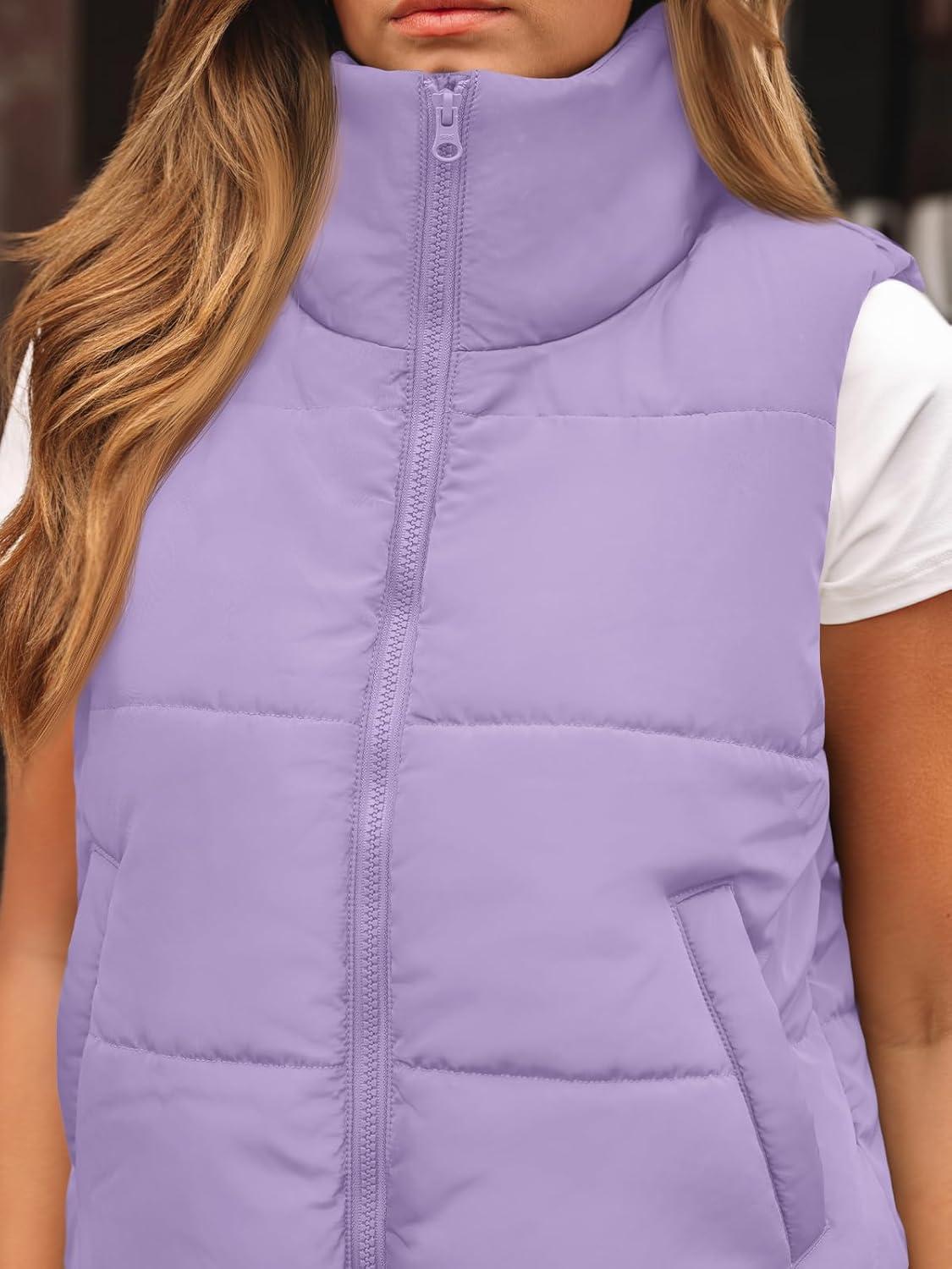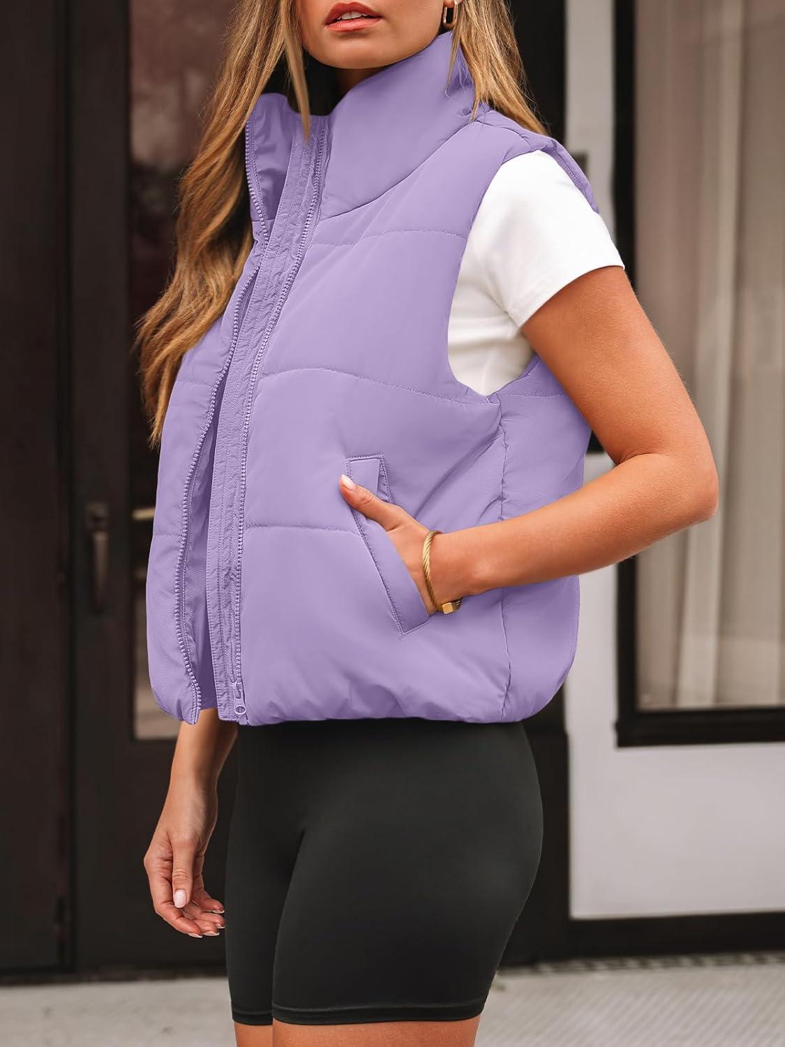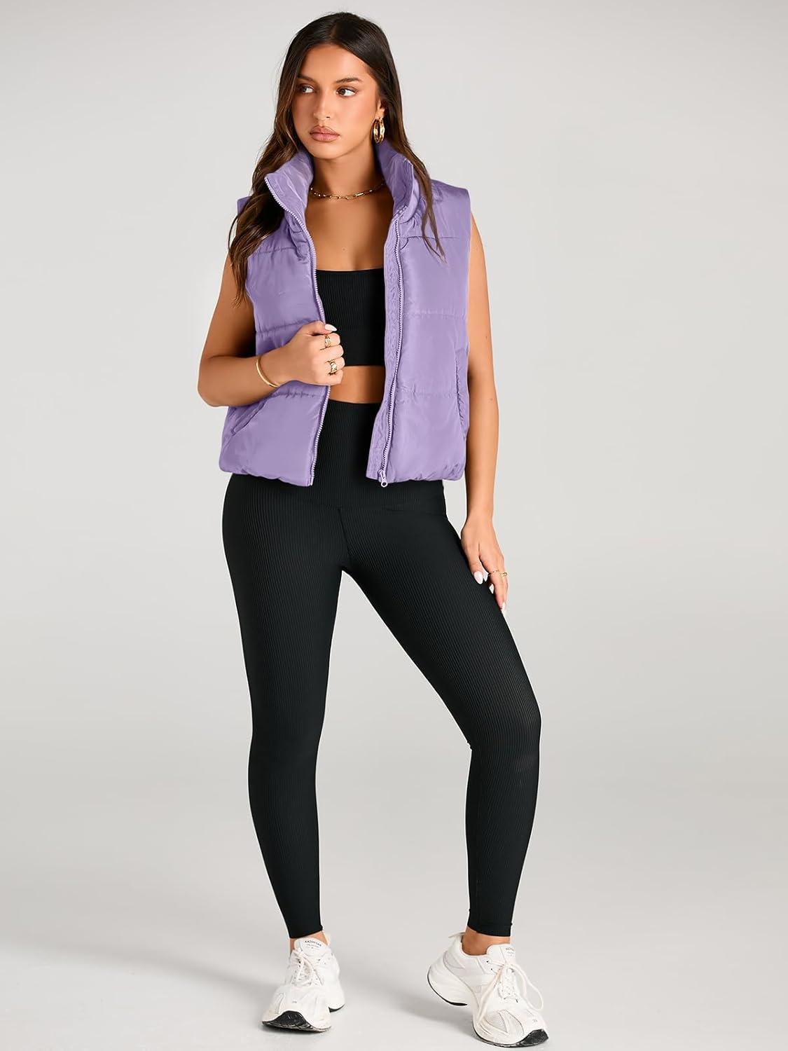 AUTOMET Puffer Vest Women Sleeveless Winter Clothing Cropped Outerwear Warm Puffy Fall Outfits Spring Fashion Vest Tops 2025(Purple)