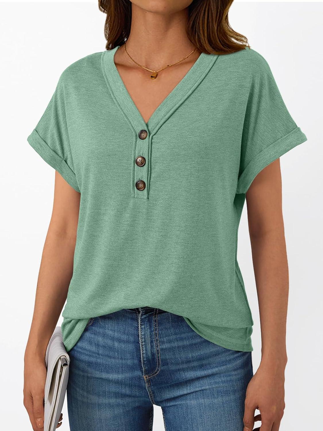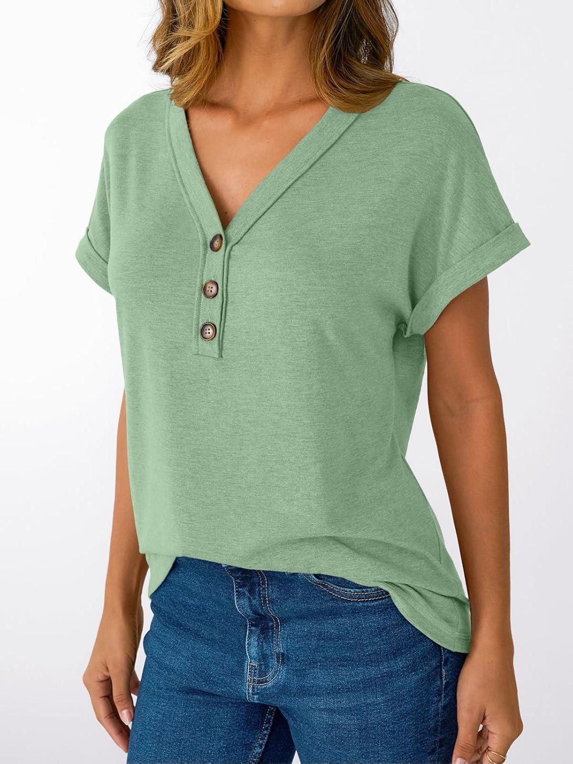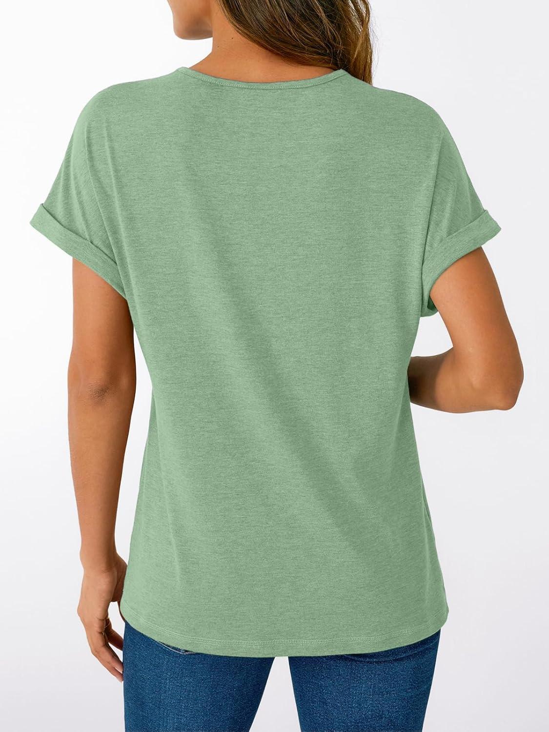 AUTOMET Short Sleeve V Neck T Shirts Womens Cap Sleeve Summer Casual Dressy Tops(Light Green)