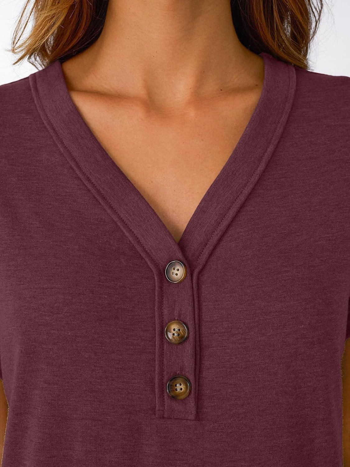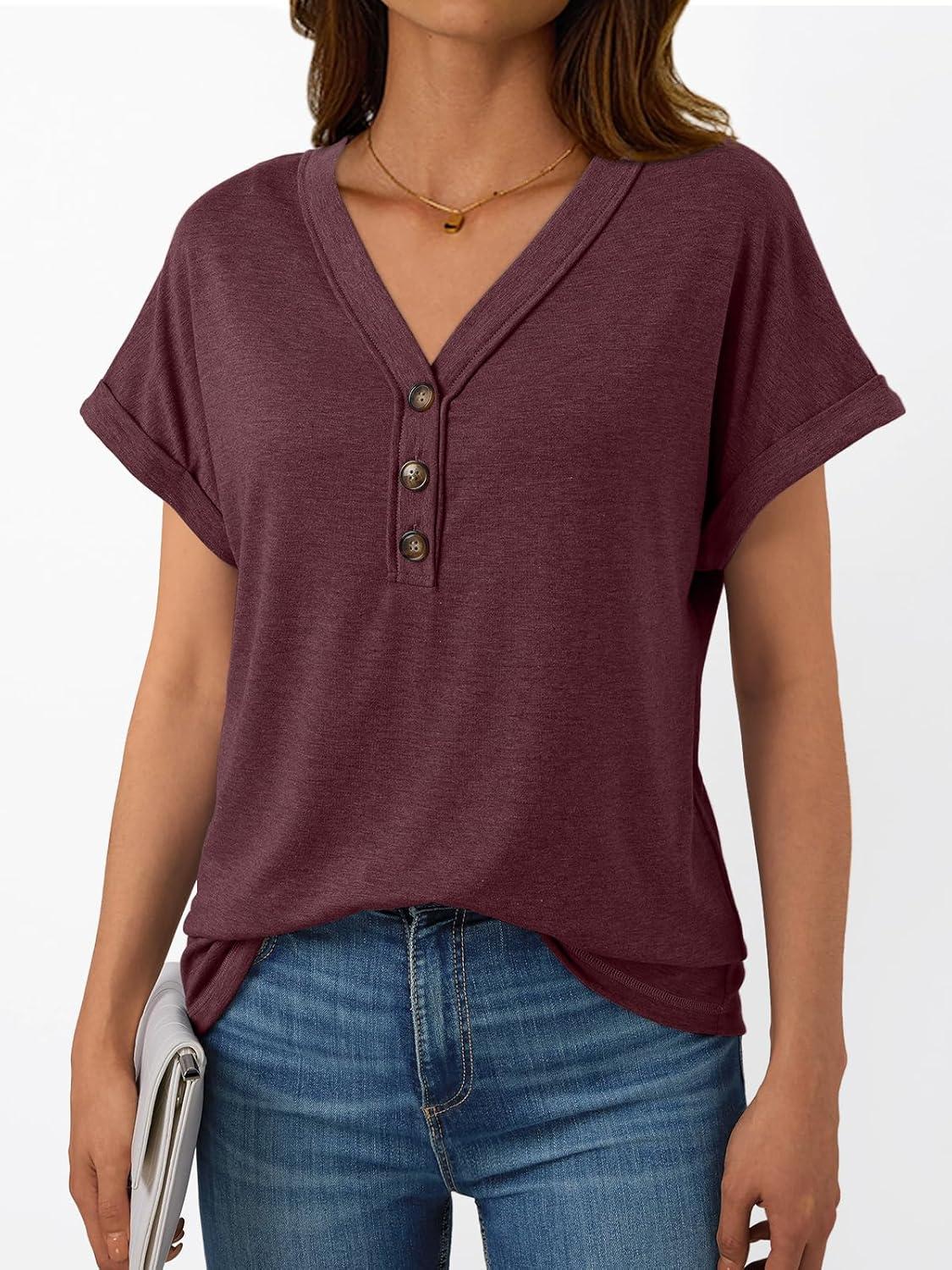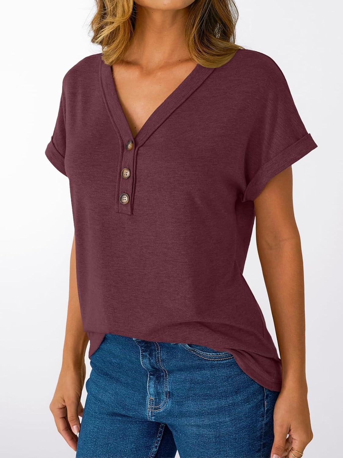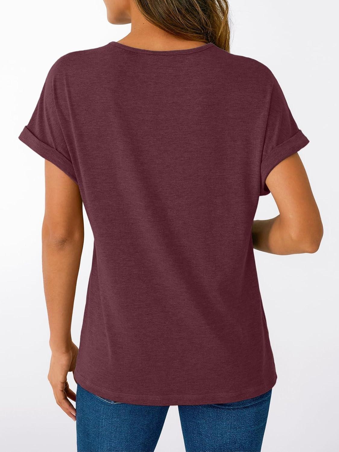 AUTOMET Short Sleeve V Neck T Shirts Womens Cap Sleeve Summer Casual Dressy Tops(Wine)