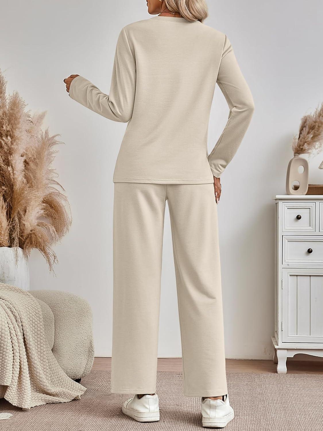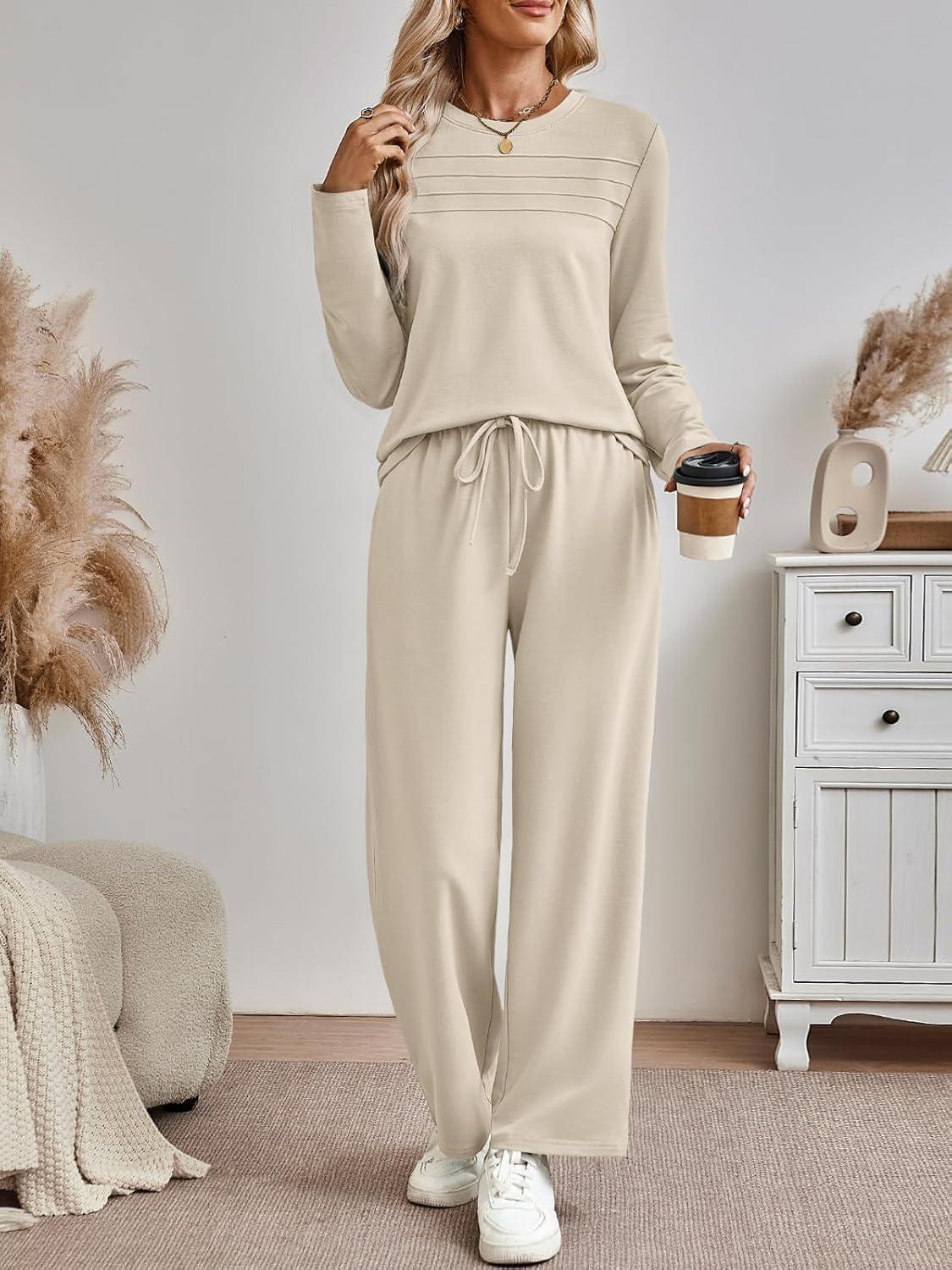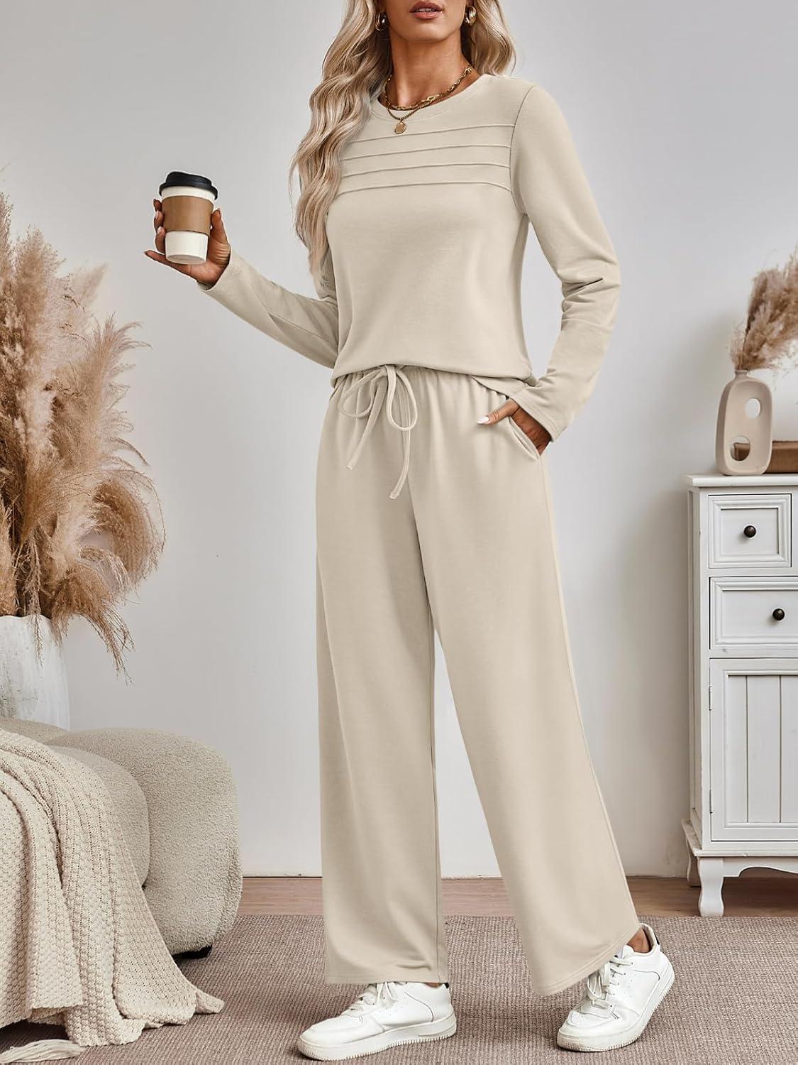 AUTOMET Sweatsuits Women 2 Piece Outfit Fall Airport Lounge Sweat Sets With Wide Leg Pants Track Fashion Suits 2025(Beige)