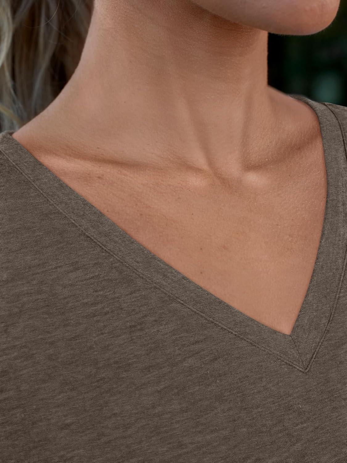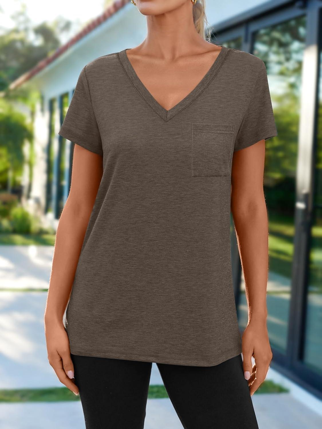 AUTOMET T Shirts for Women Short Sleeve Shirts V Neck Plus Size Summer Tops Casual Beach Vacation Outfits Clothes 2025(Darkcoffee)