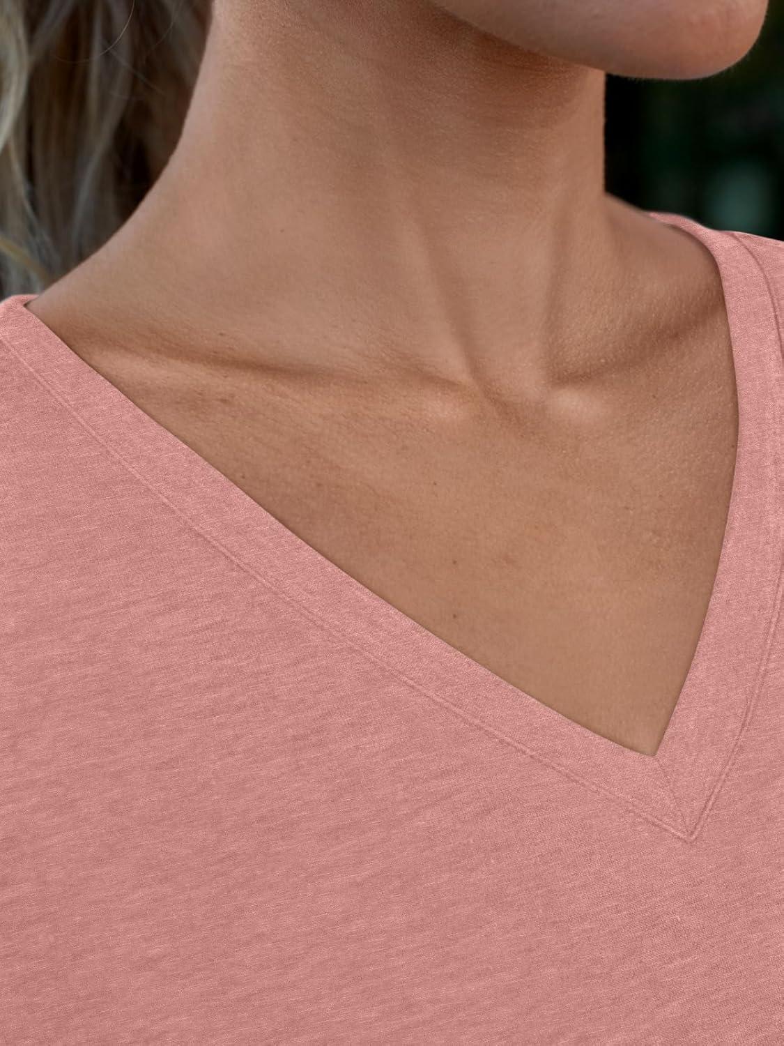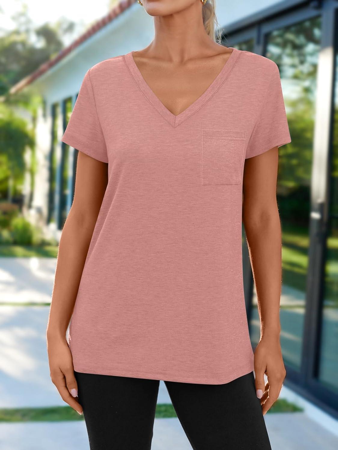 AUTOMET T Shirts for Women Short Sleeve Shirts V Neck Plus Size Summer Tops Casual Beach Vacation Outfits Clothes 2025(Pink)