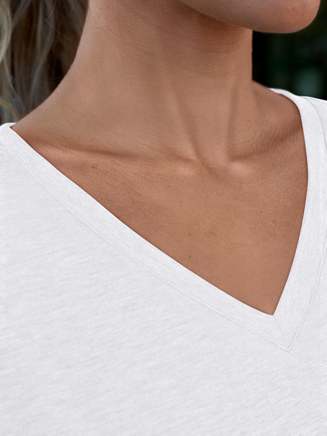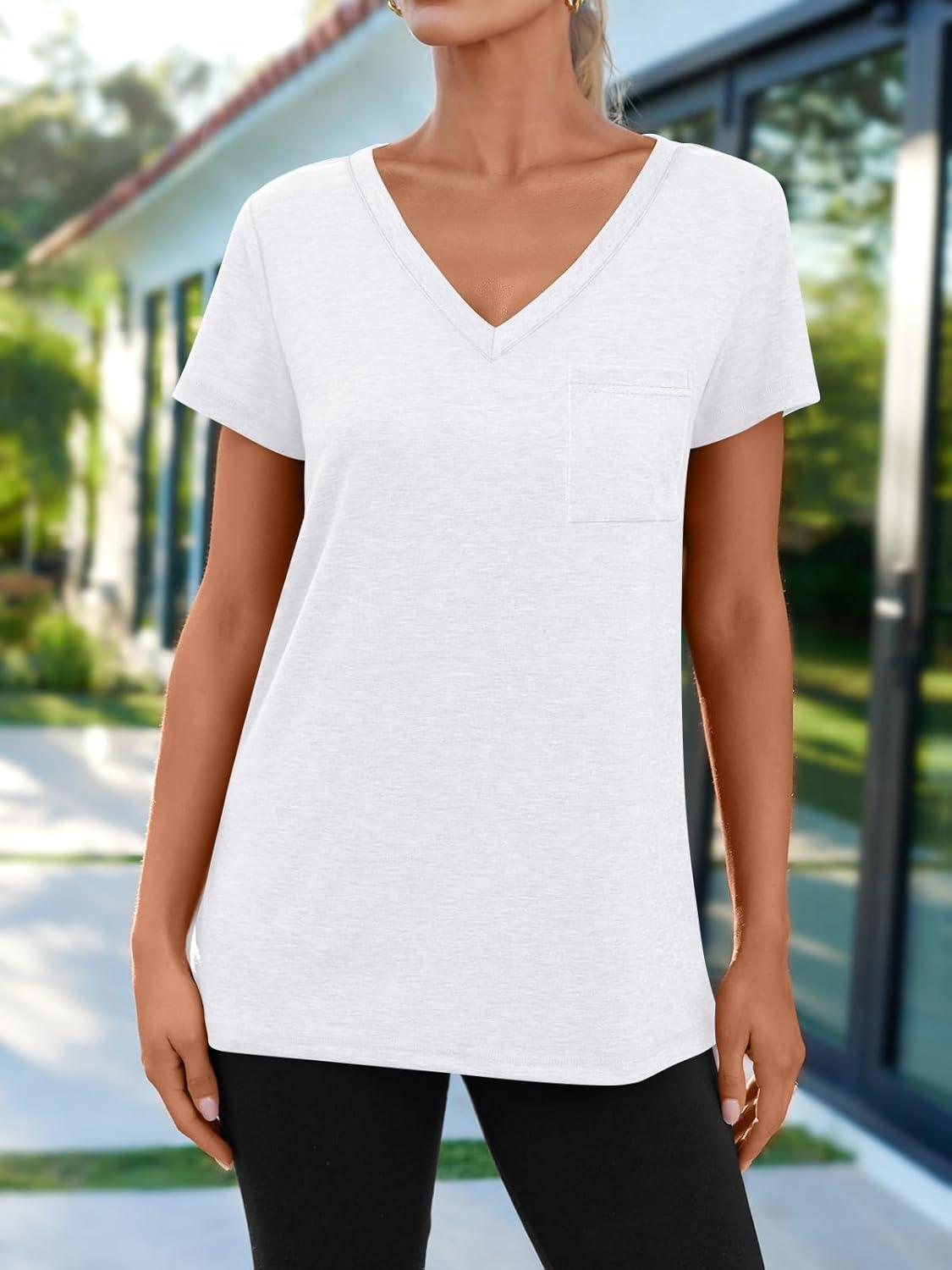 AUTOMET T Shirts for Women Short Sleeve Shirts V Neck Plus Size Summer Tops Casual Beach Vacation Outfits Clothes 2025(White)