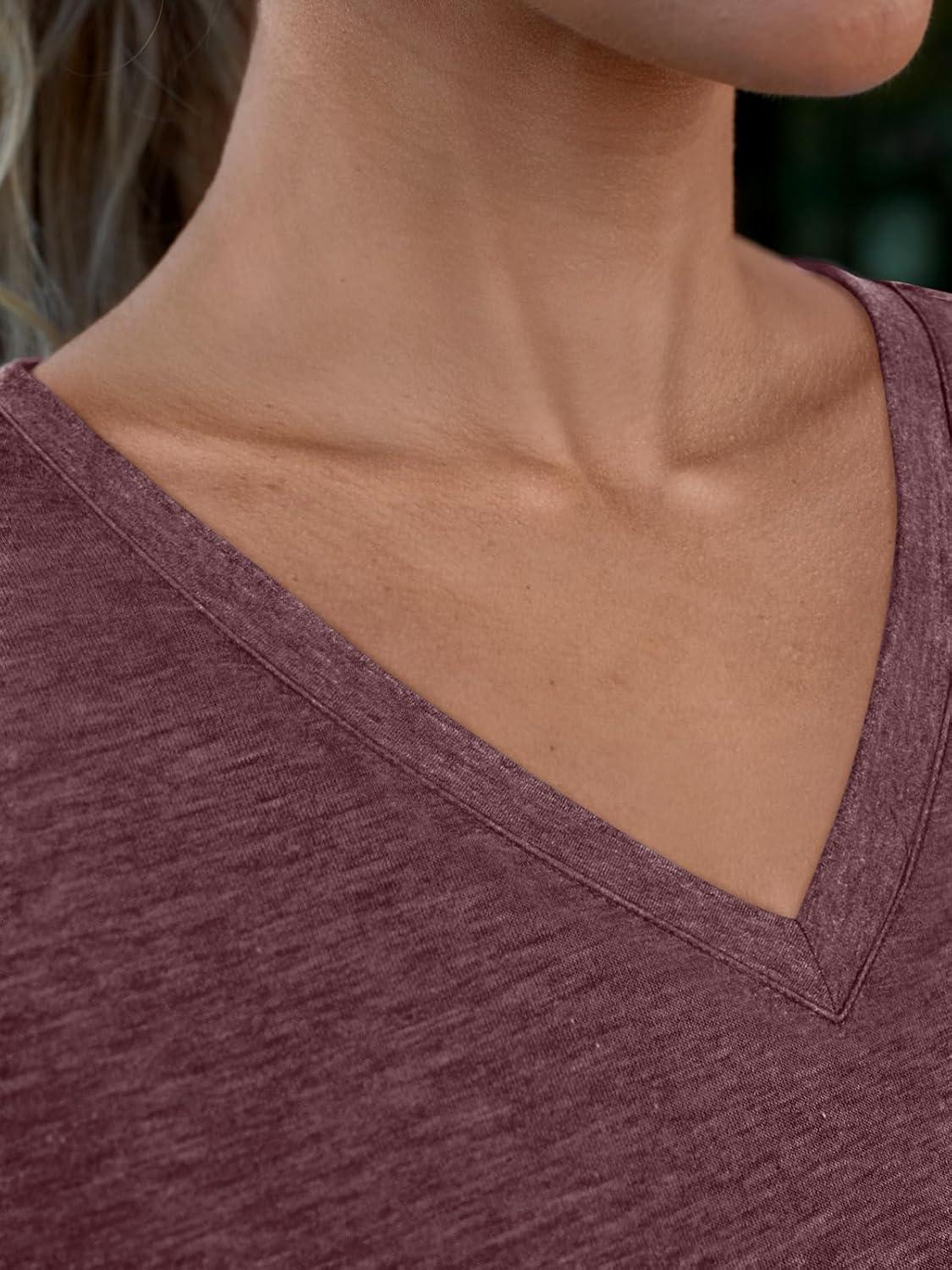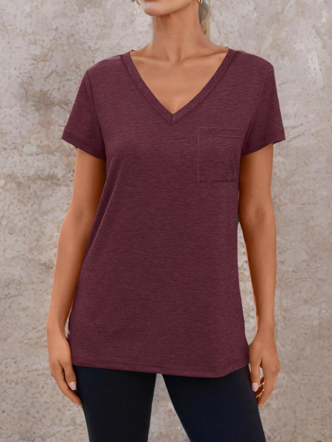AUTOMET T Shirts for Women Short Sleeve Shirts V Neck Plus Size Summer Tops Casual Beach Vacation Outfits Clothes 2025(Winered)