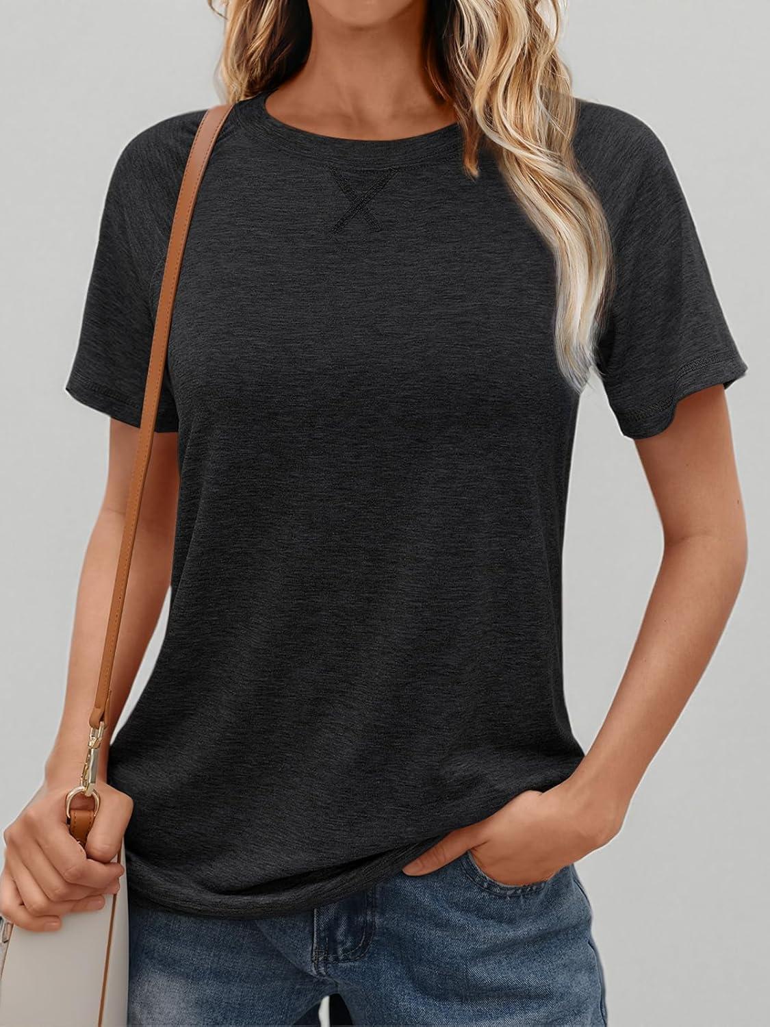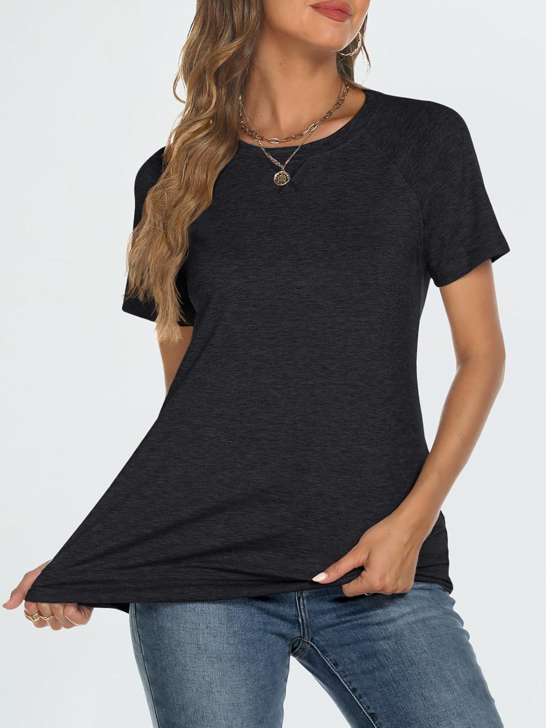 AUTOMET T Shirts Short Sleeve Crewneck Tees for Women Trendy Lightweight Soft Casual Summer Tops Clothes 2025(Black)