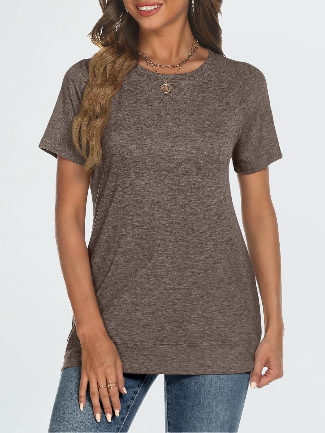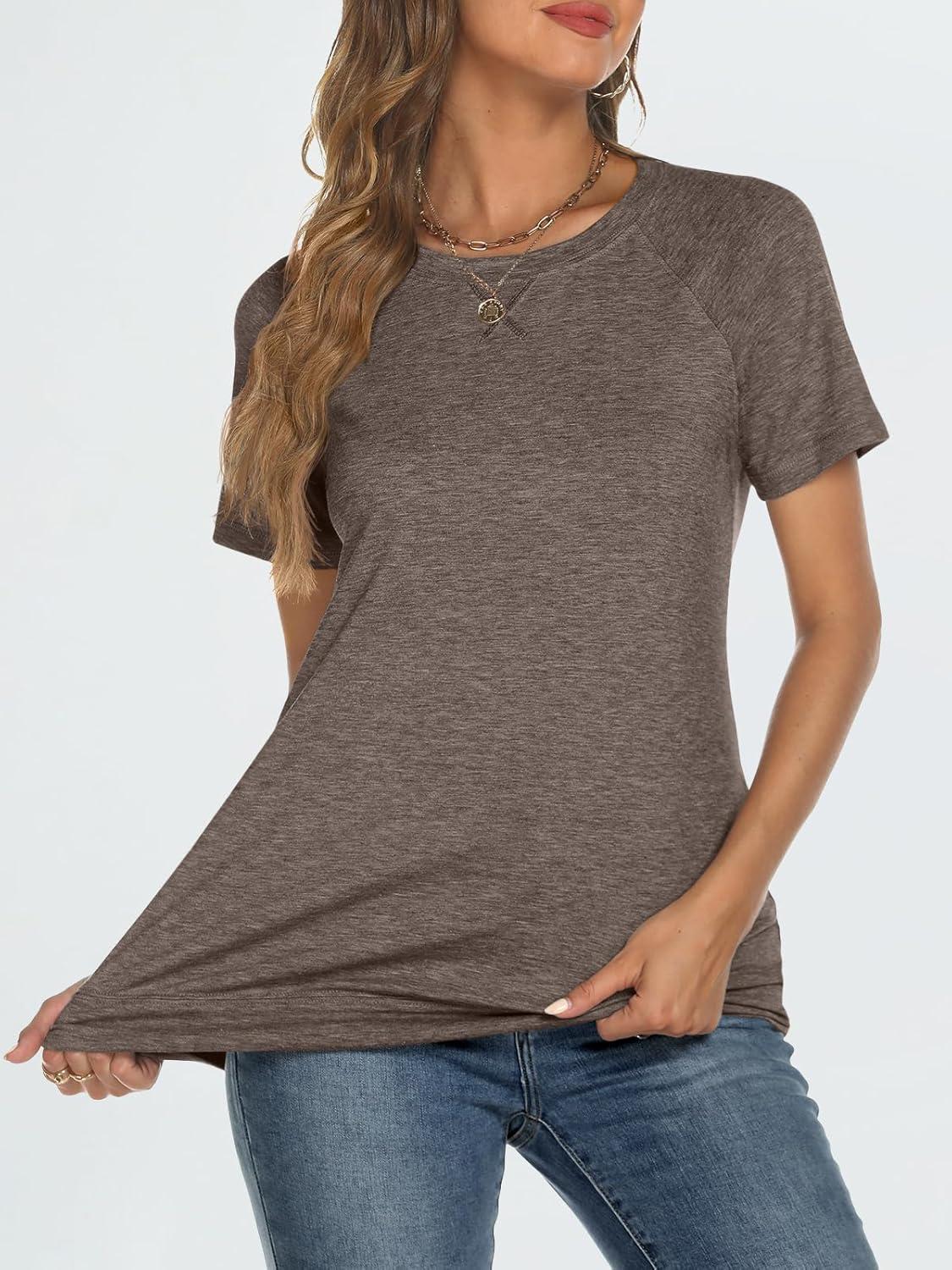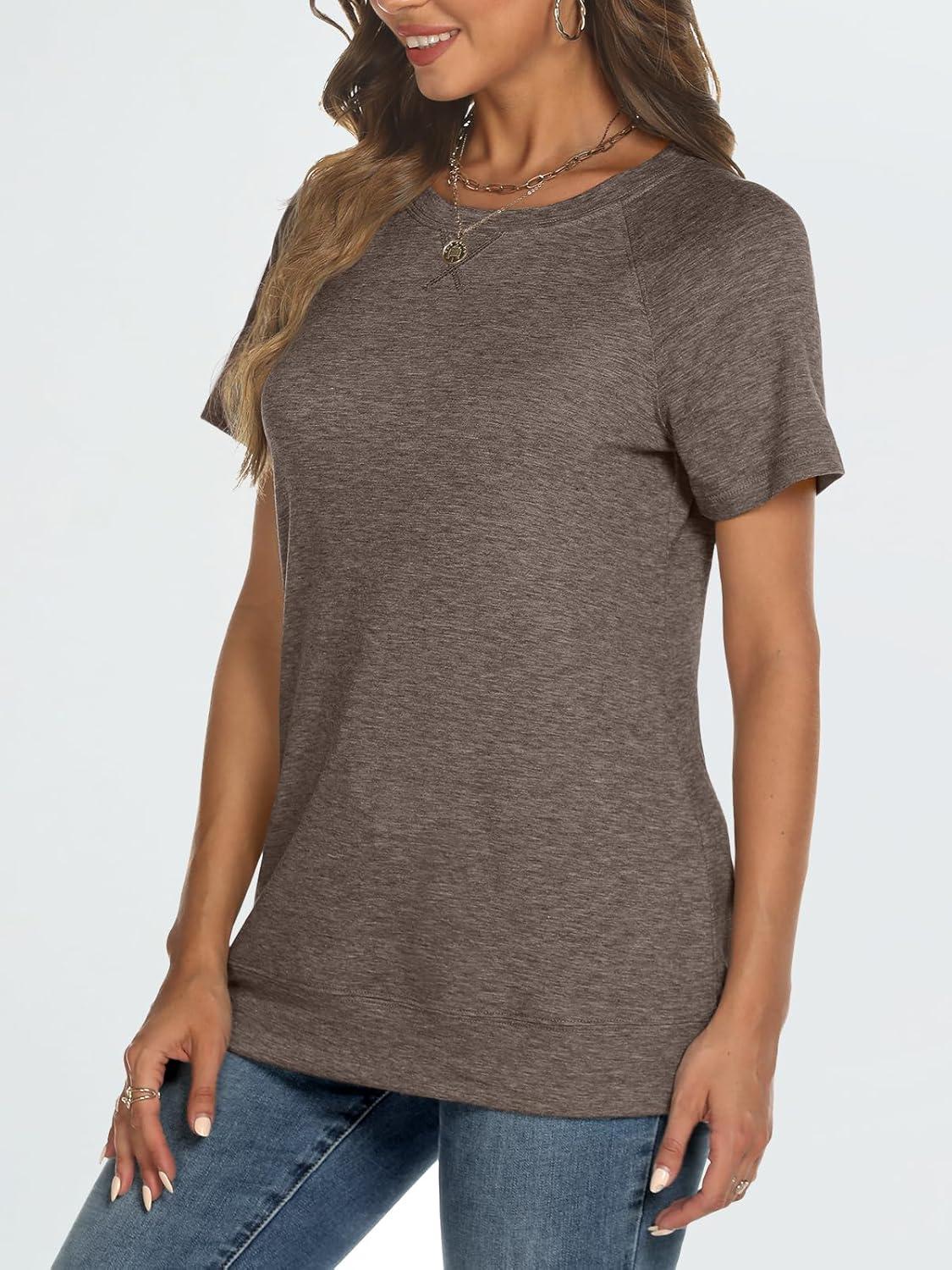 AUTOMET T Shirts Short Sleeve Crewneck Tees for Women Trendy Lightweight Soft Casual Summer Tops Clothes 2025(Coffee Grey)