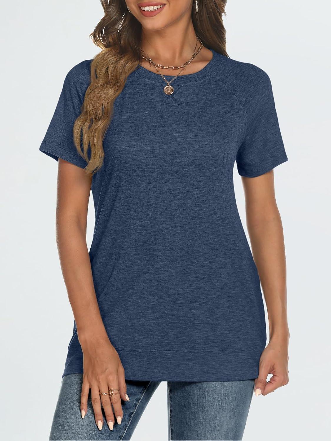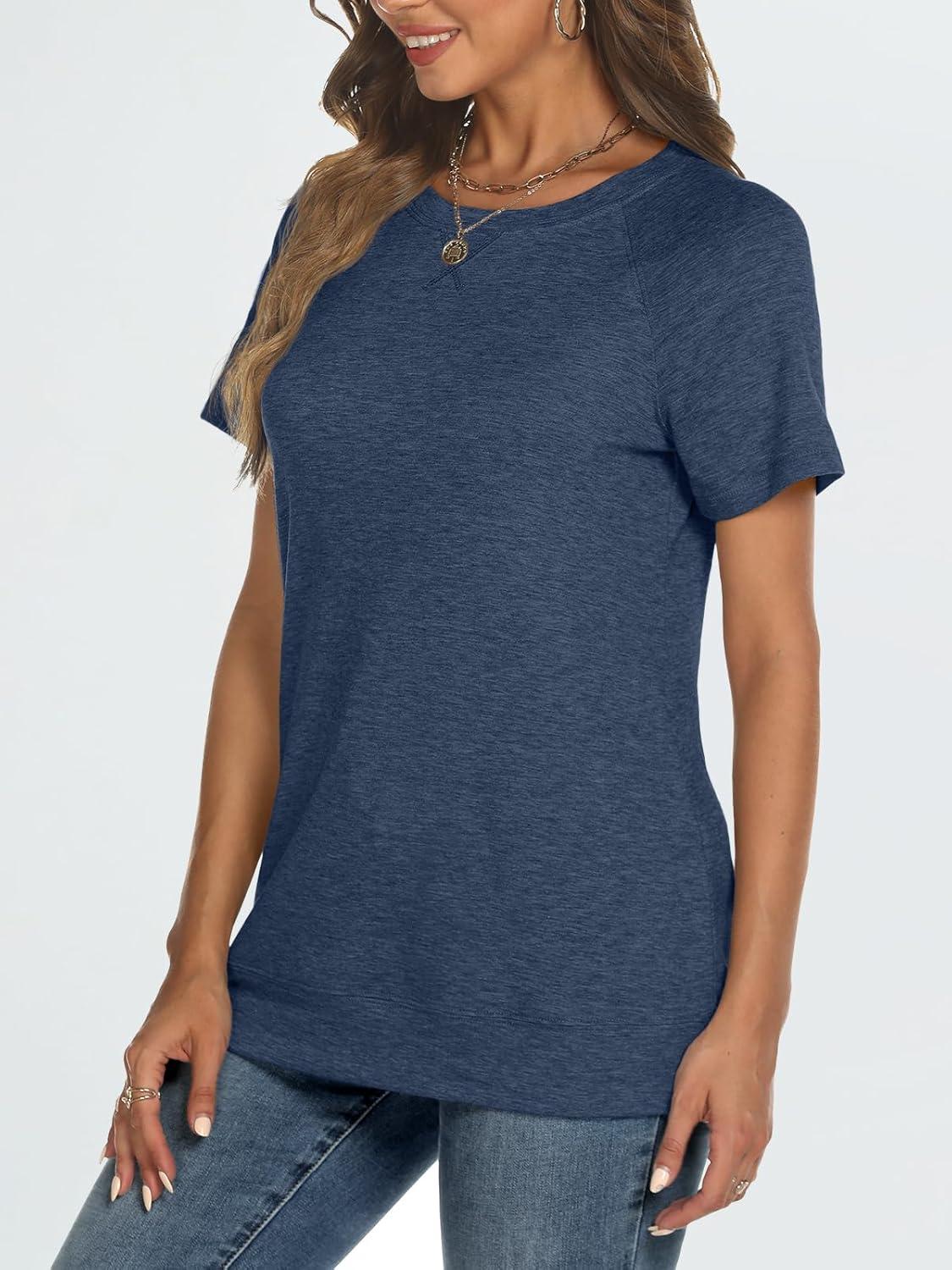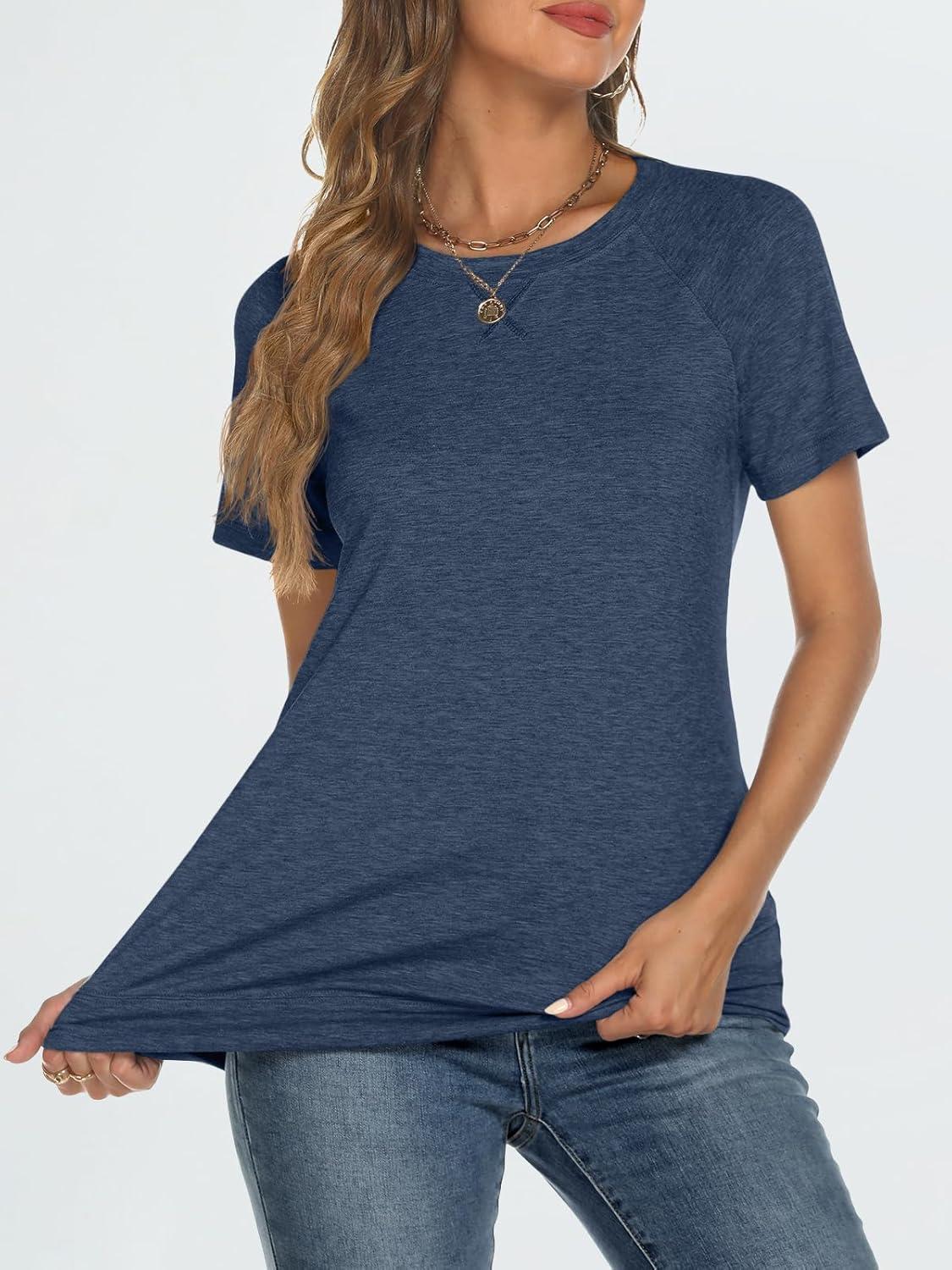 AUTOMET T Shirts Short Sleeve Crewneck Tees for Women Trendy Lightweight Soft Casual Summer Tops Clothes 2025(Navy)