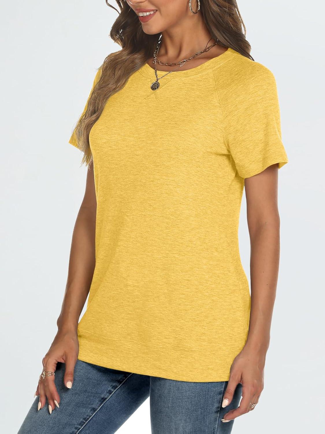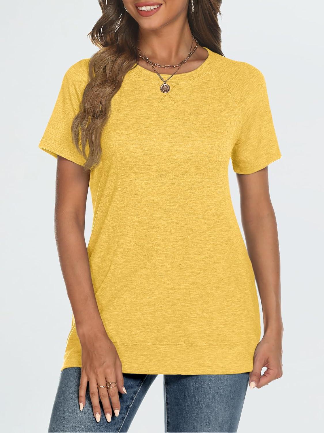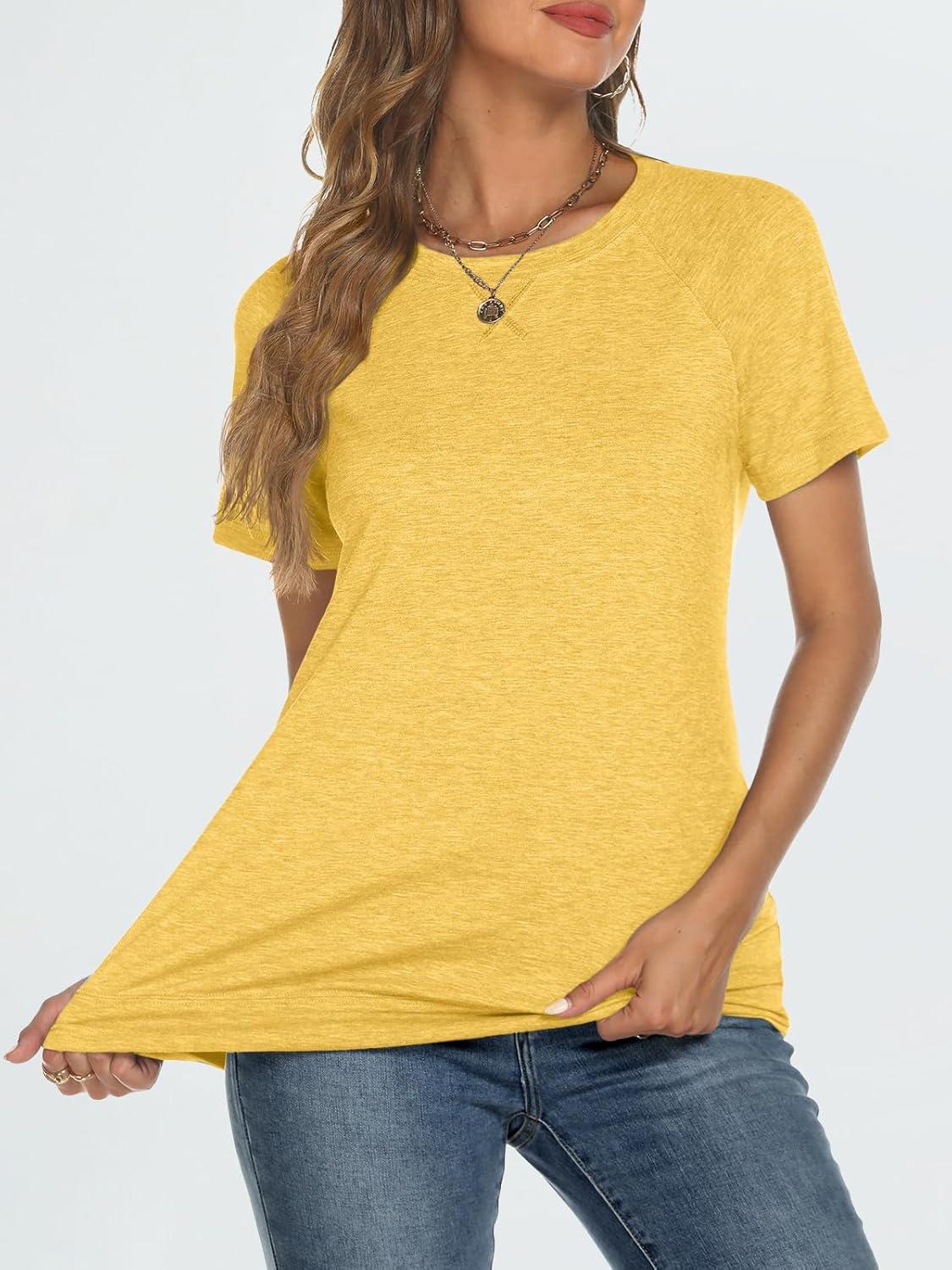 AUTOMET T Shirts Short Sleeve Crewneck Tees for Women Trendy Lightweight Soft Casual Summer Tops Clothes 2025(Yellow)