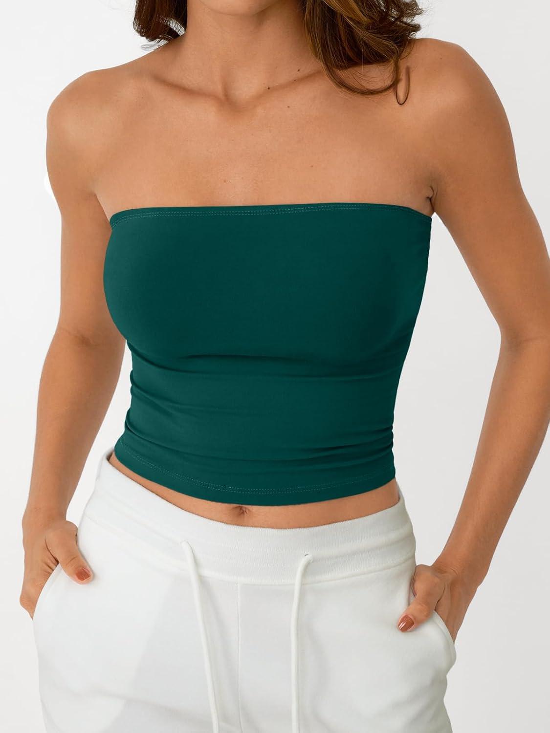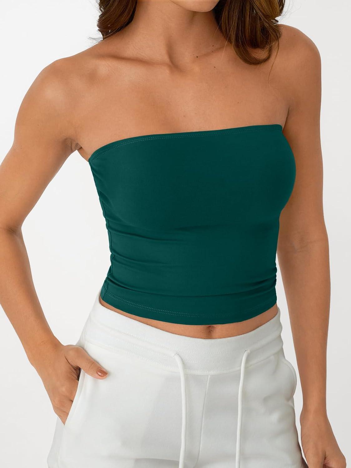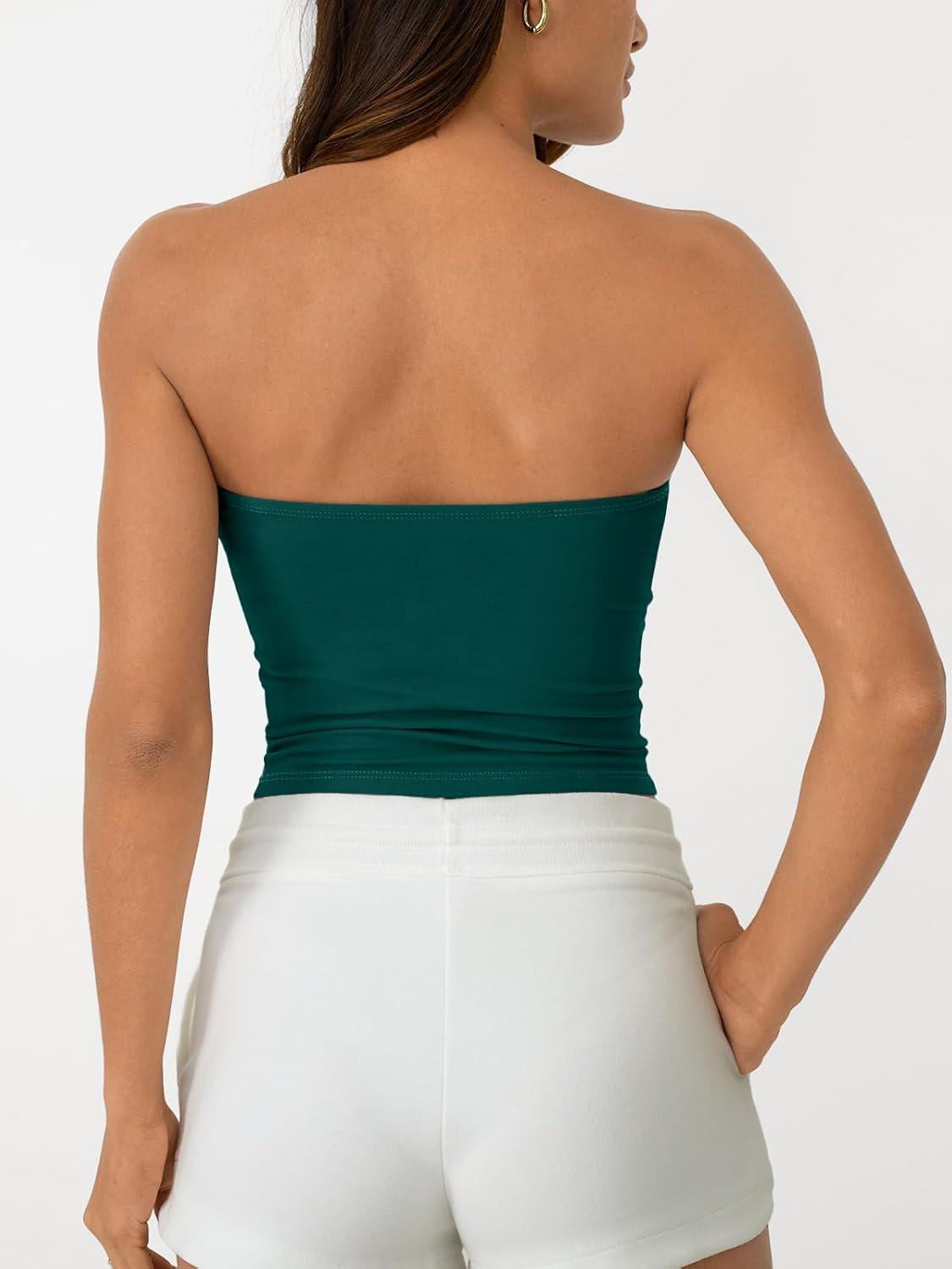 AUTOMET Tube Tops Strapless Crop Tops Basic Backless Sleeveless Bandeau Going Out Cute 2025 Summer Clothes(Darkgreen)