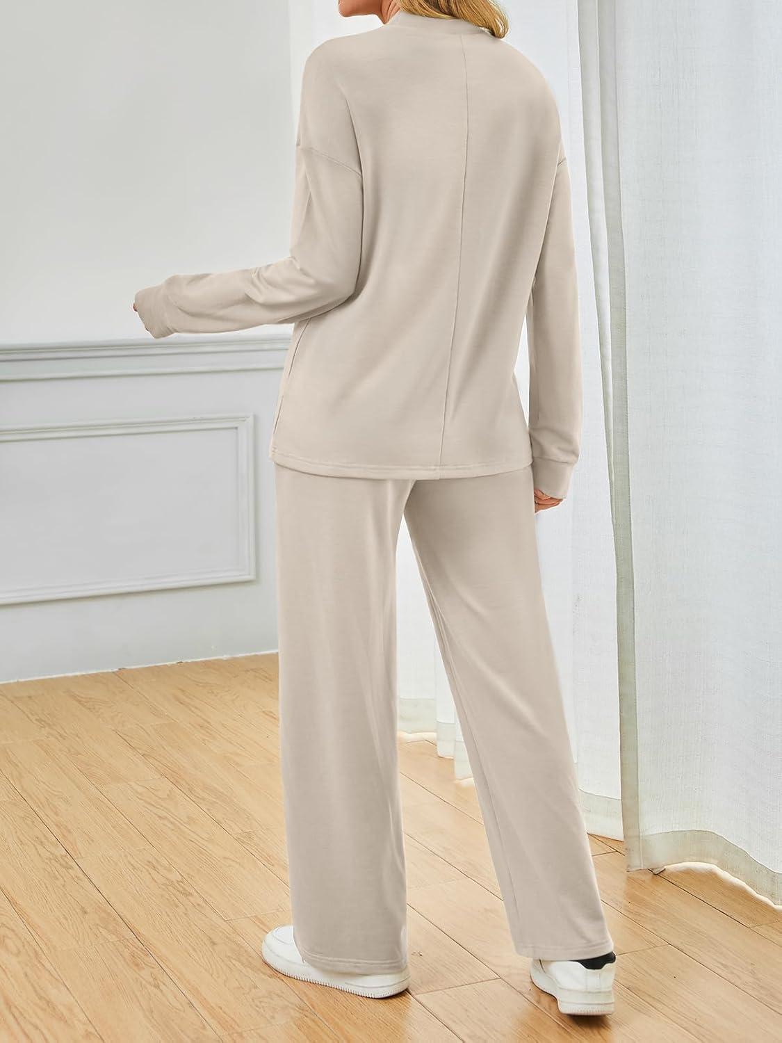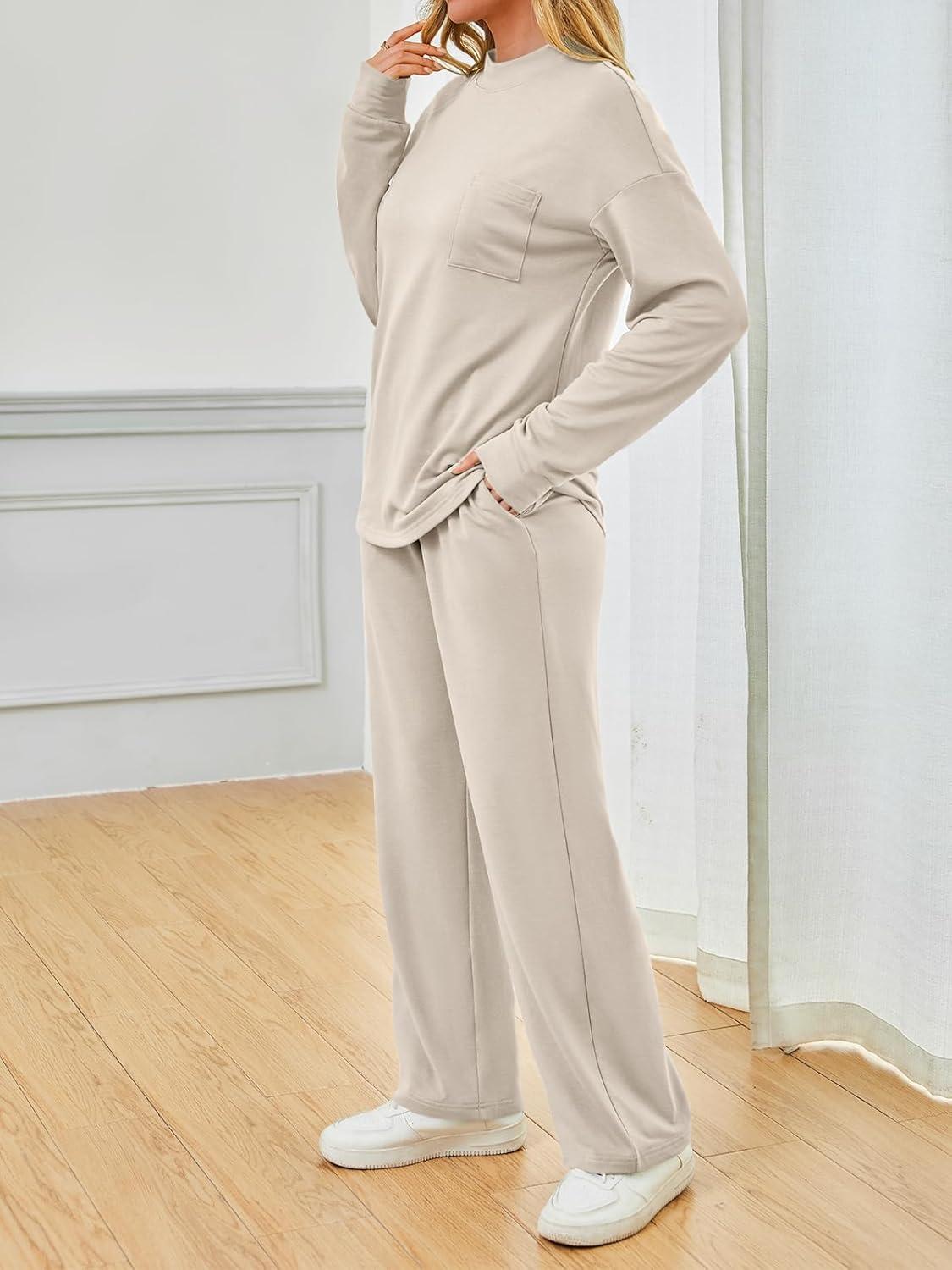 AUTOMET Two Piece Sets for Women Mock Neck Fall Outfits 2025 Matching Lounge Sweat Set Airport Travel Sweatsuits Comfy Sets(Aprioct)