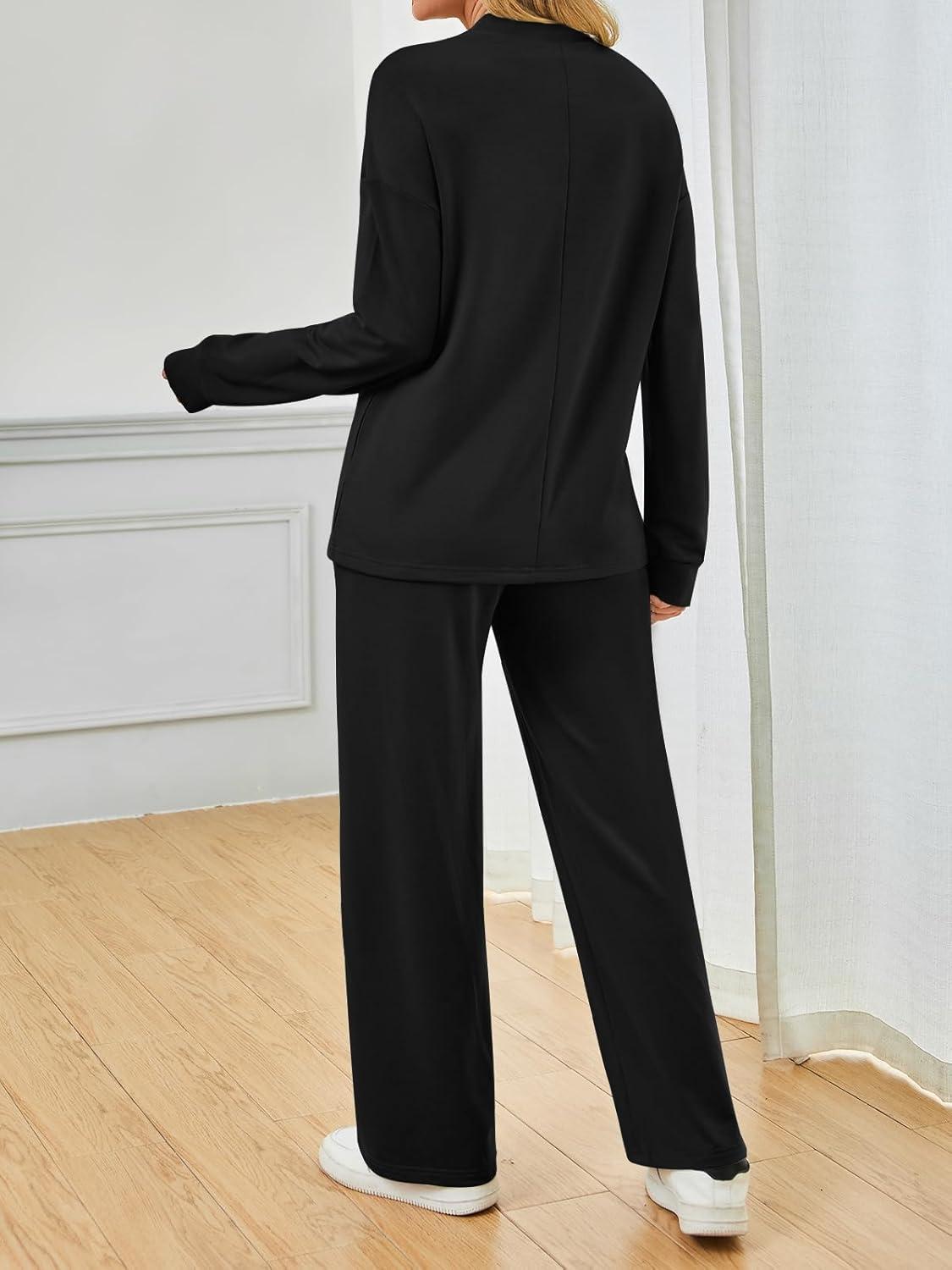 AUTOMET Two Piece Sets for Women Mock Neck Fall Outfits 2025 Matching Lounge Sweat Set Airport Travel Sweatsuits Comfy Sets(Black)