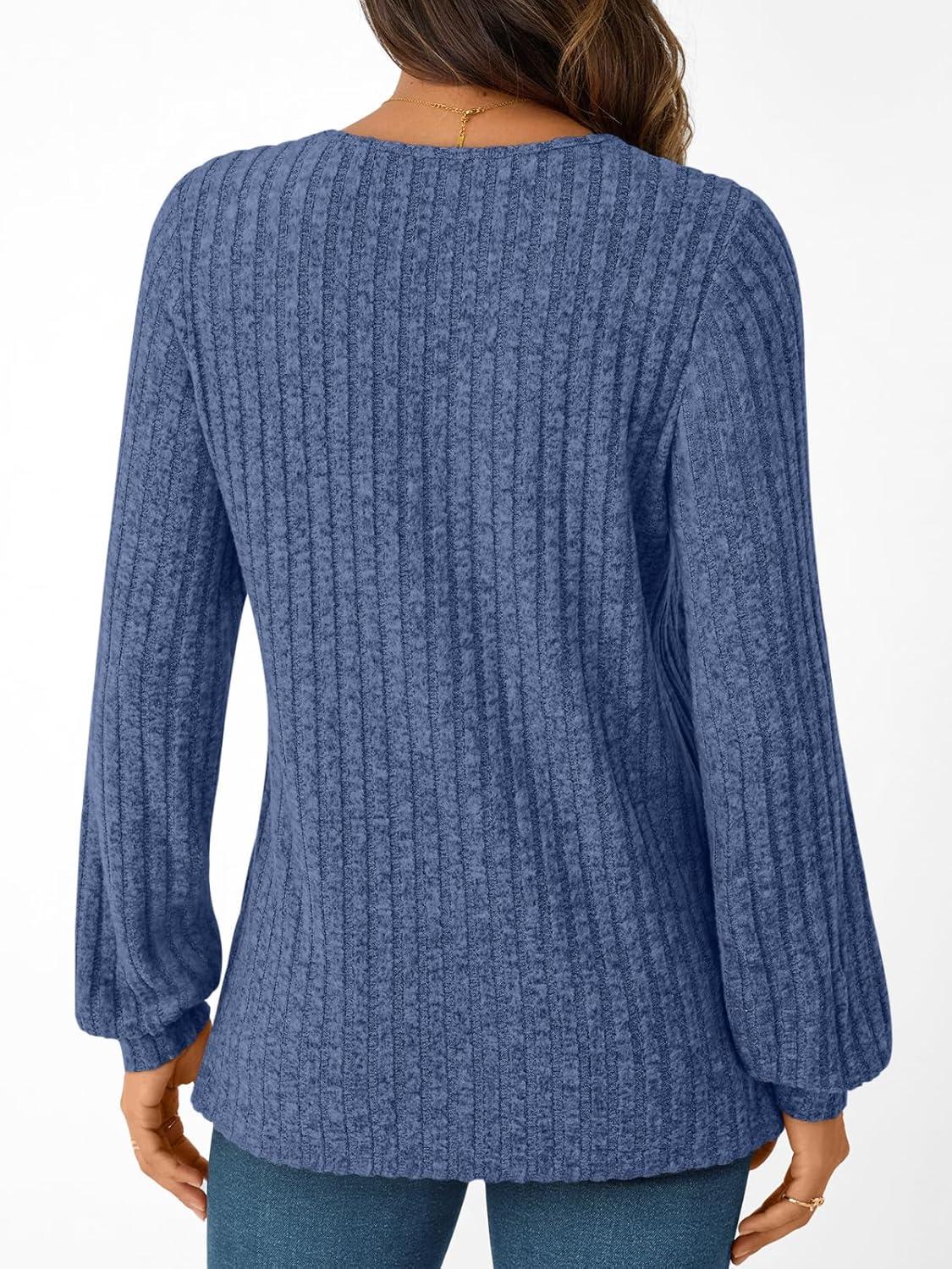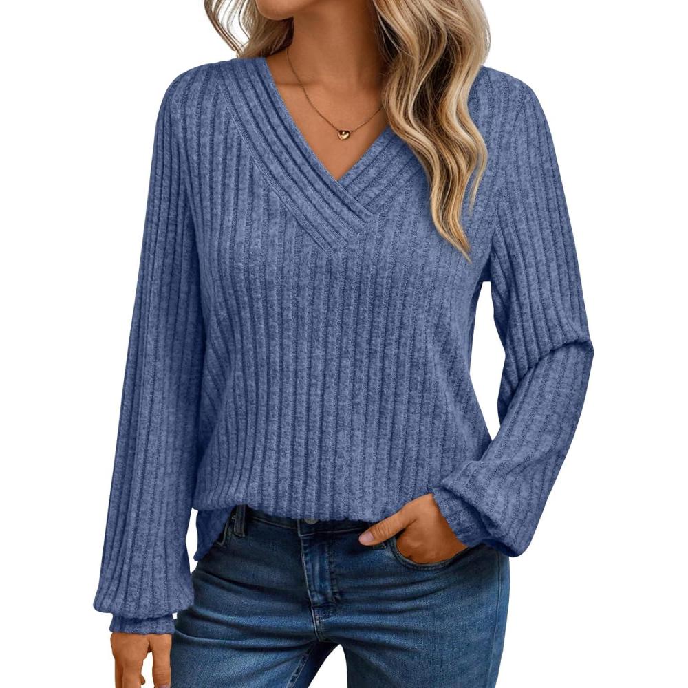 AUTOMET Women Long Sleeve Shirts Fall V Neck Work Tops 2025 Fashion Tunic Sweaters Dressy Casual Winter Blouse Trendy Outfits(Blue)