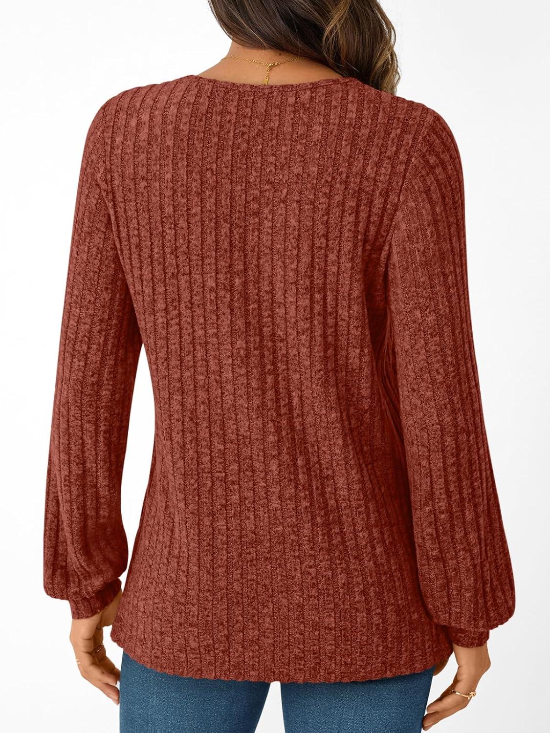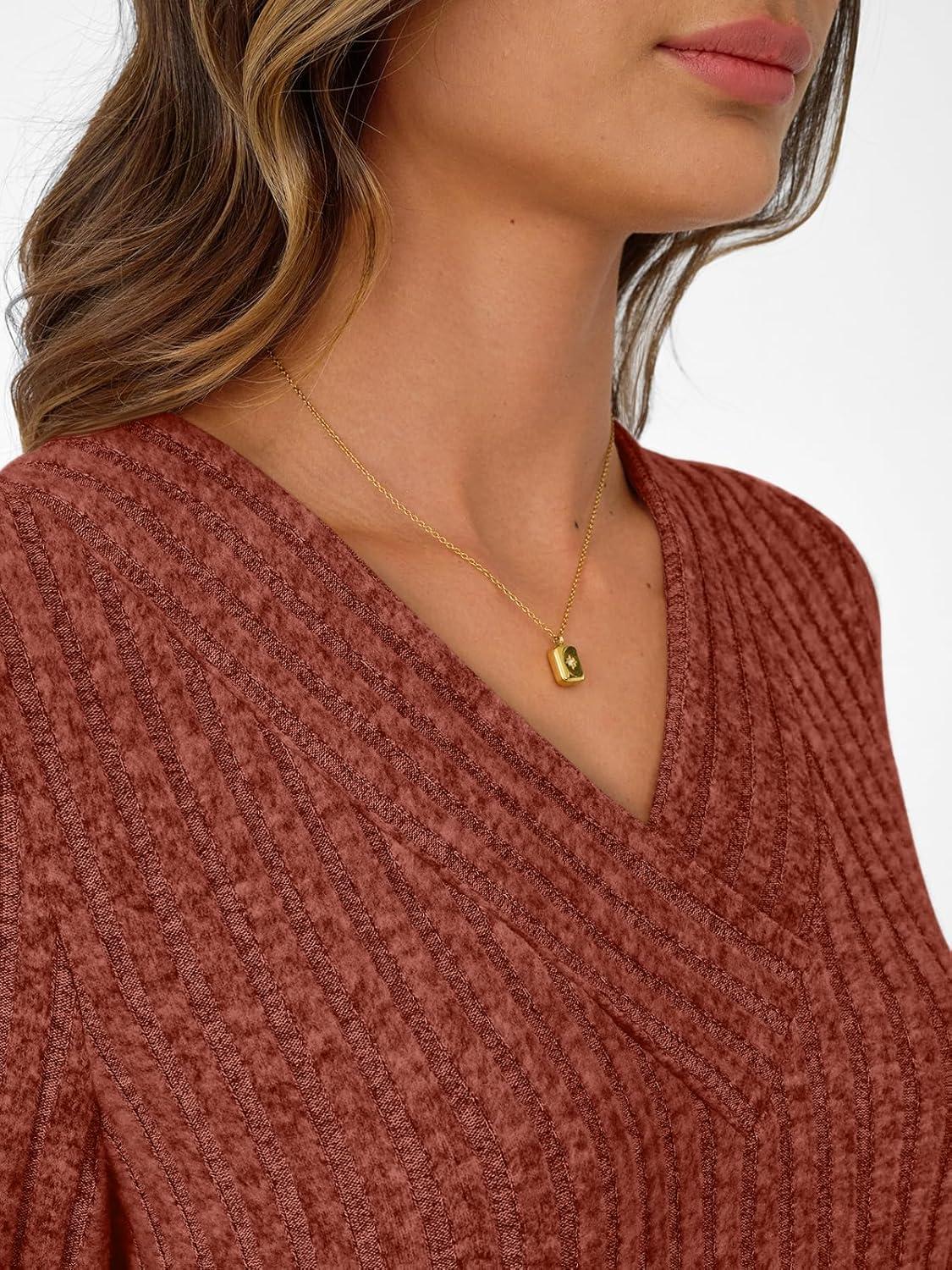 AUTOMET Women Long Sleeve Shirts Fall V Neck Work Tops 2025 Fashion Tunic Sweaters Dressy Casual Winter Blouse Trendy Outfits(Caramel)