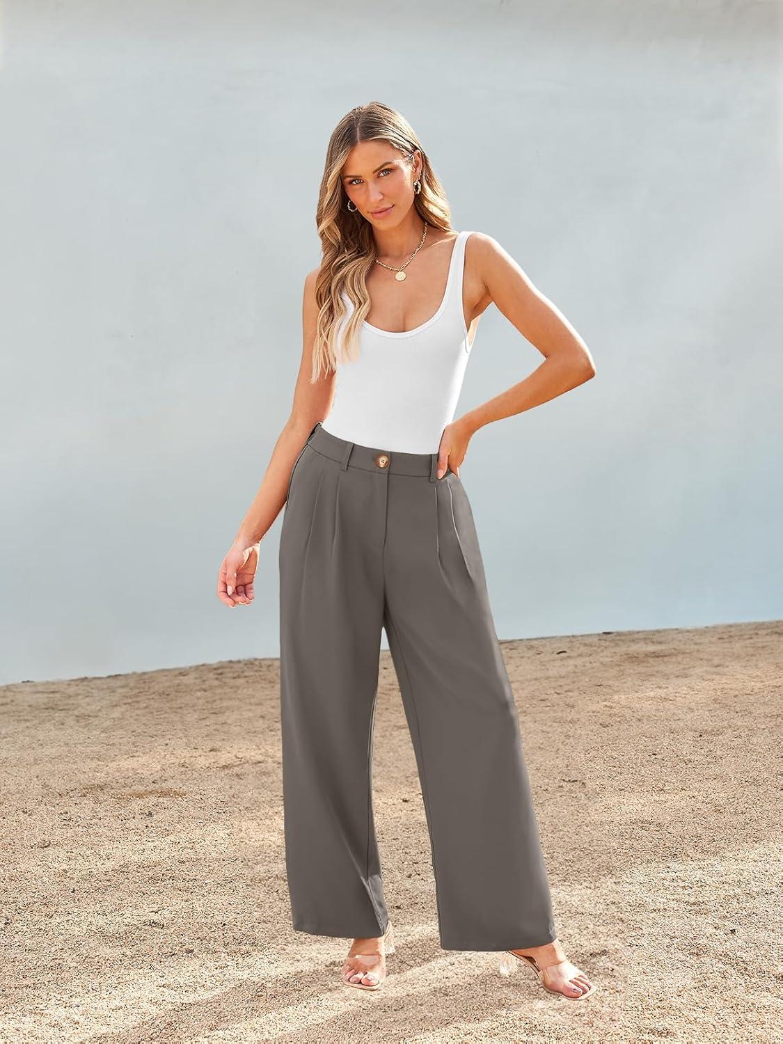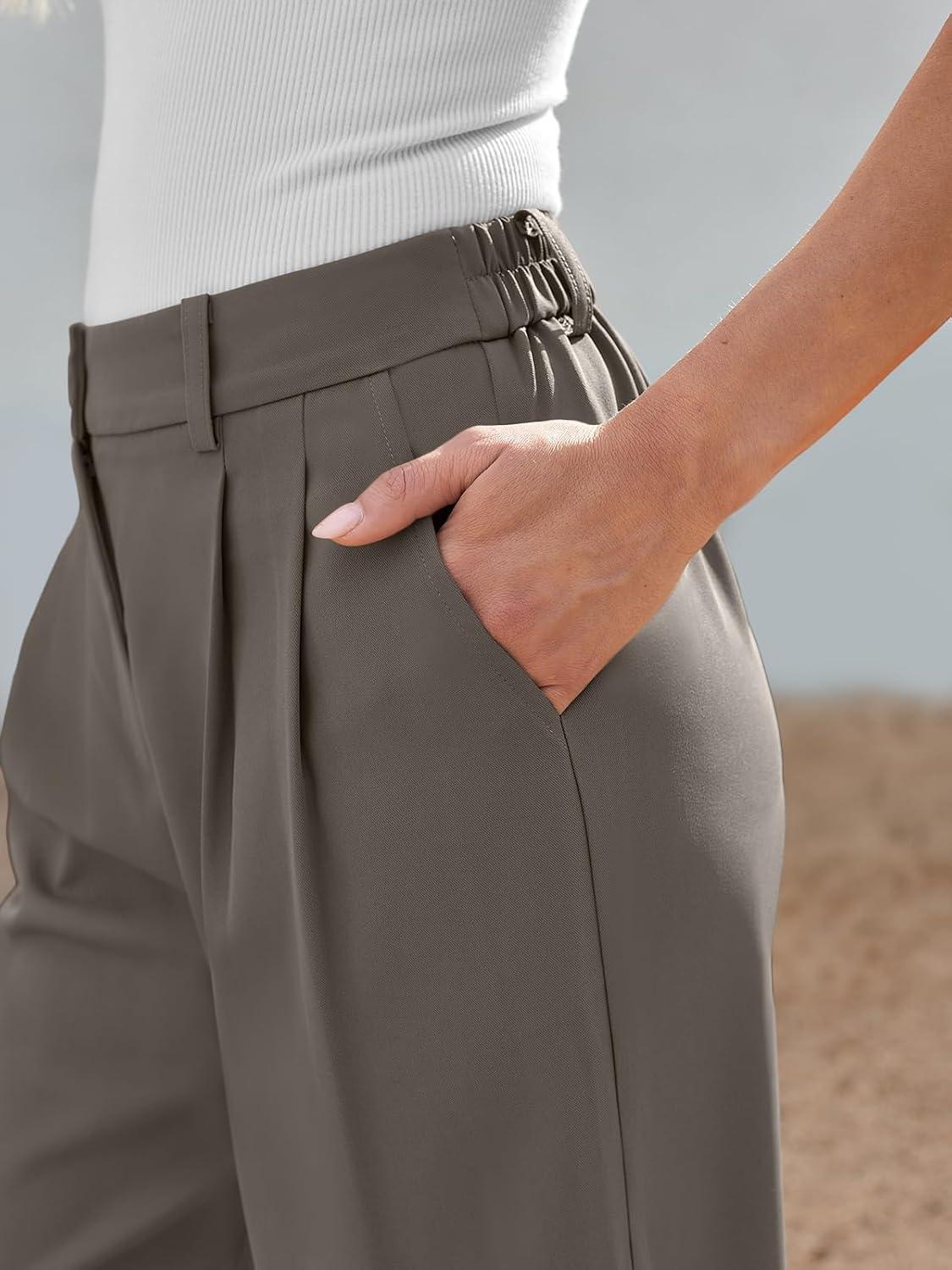 AUTOMET Women Wide Leg Dress Pants High Waisted Loose Fit Business Casual Work Trousers with Pockets 2026(Mocha Brown)
