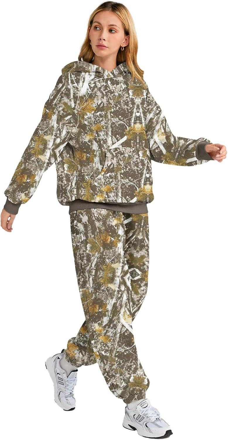 AUTOMET Womens 2 Piece Outfits Lounge Hoodie Sweatsuit Sets Plus Size Fall Fashion Clothes Airport Travel Pants Tracksuits(Camobrown)
