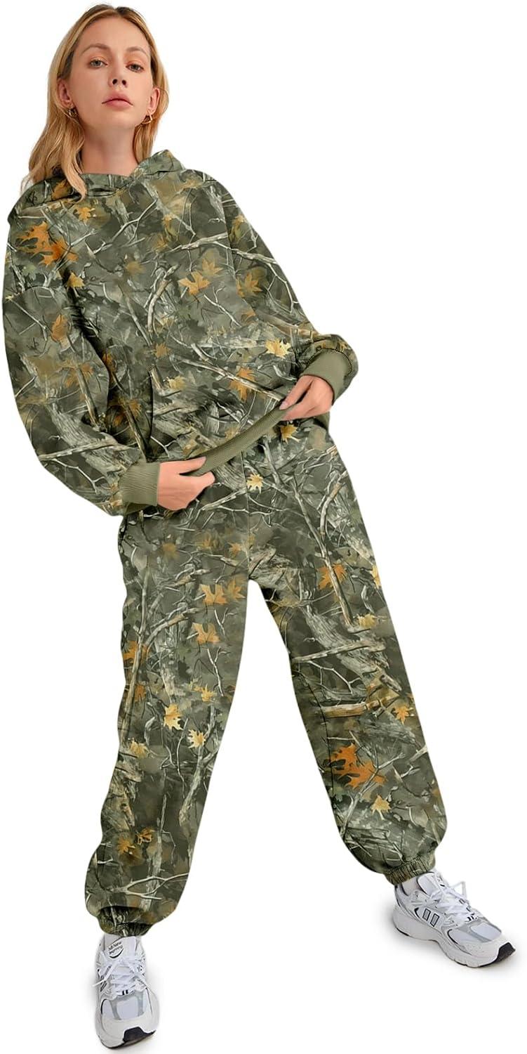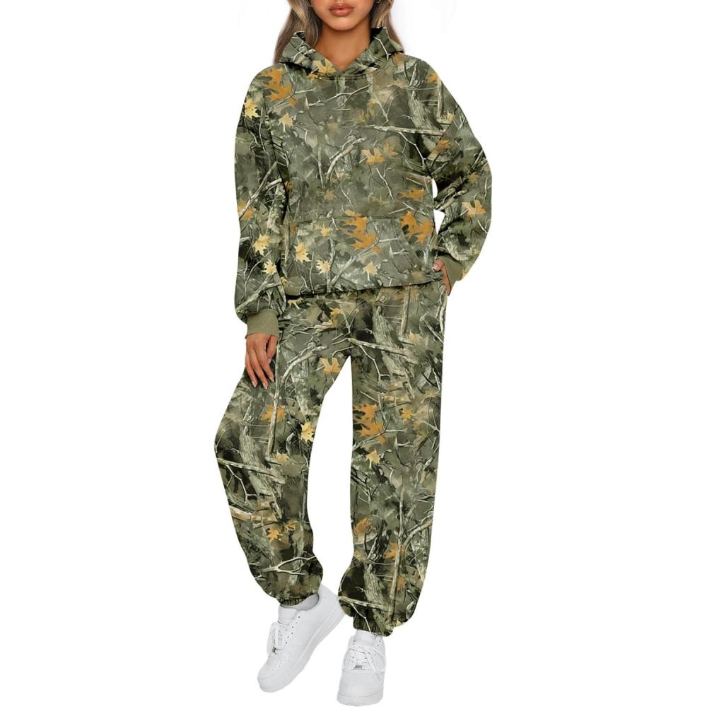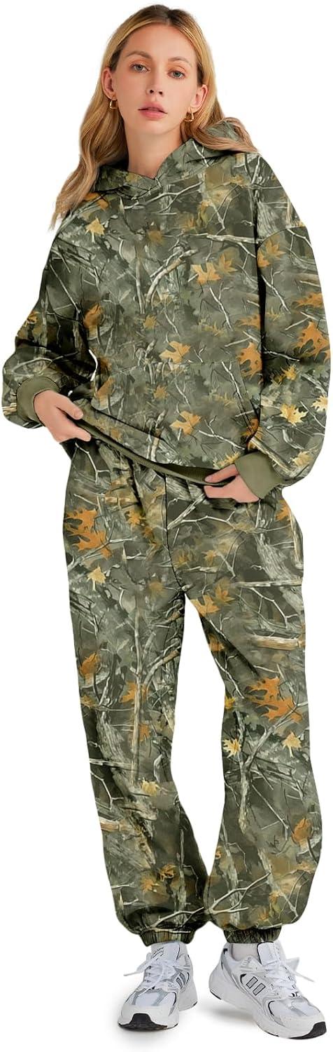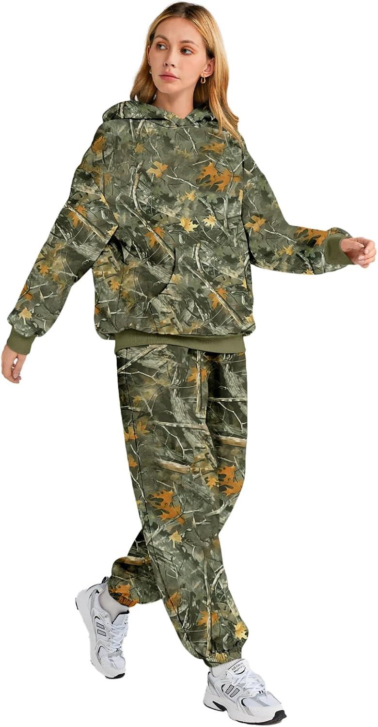 AUTOMET Womens 2 Piece Outfits Lounge Hoodie Sweatsuit Sets Plus Size Fall Fashion Clothes Airport Travel Pants Tracksuits(Camogreen)