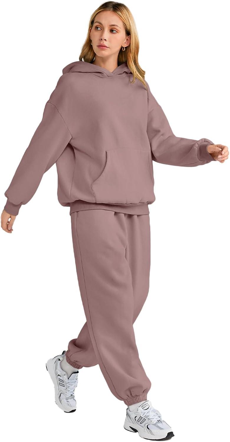 AUTOMET Womens 2 Piece Outfits Lounge Hoodie Sweatsuit Sets Plus Size Fall Fashion Clothes Airport Travel Pants Tracksuits(Darkpink)