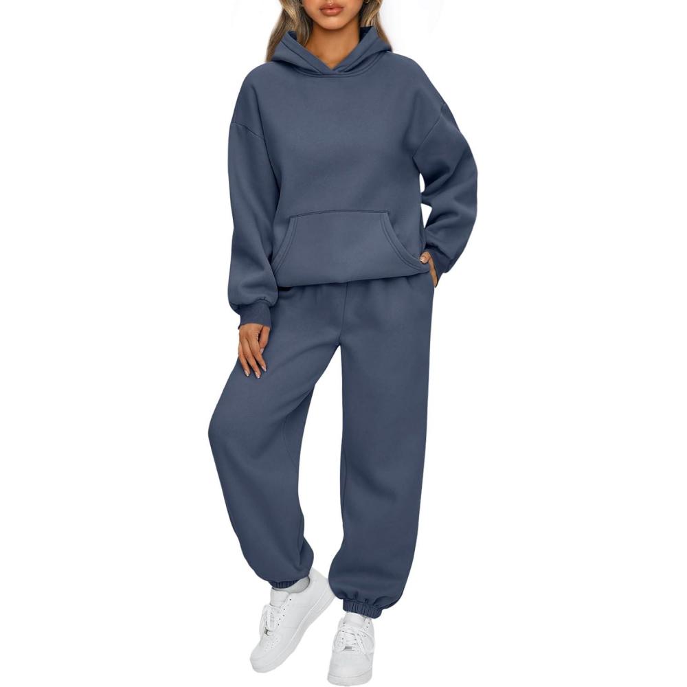 AUTOMET Womens 2 Piece Outfits Lounge Hoodie Sweatsuit Sets Plus Size Fall Fashion Clothes Airport Travel Pants Tracksuits(Dustyblue)