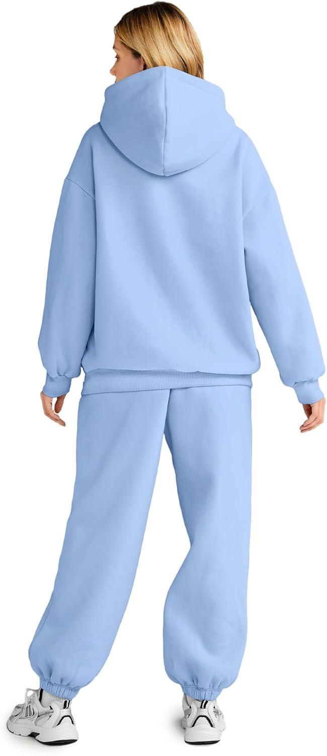 AUTOMET Womens 2 Piece Outfits Lounge Hoodie Sweatsuit Sets Plus Size Fall Fashion Clothes Airport Travel Pants Tracksuits(Lightblue)