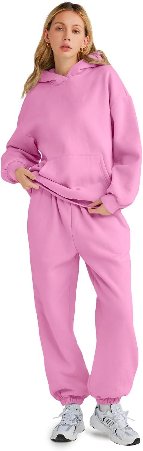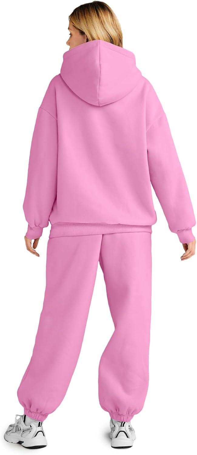 AUTOMET Womens 2 Piece Outfits Lounge Hoodie Sweatsuit Sets Plus Size Fall Fashion Clothes Airport Travel Pants Tracksuits(Pink)