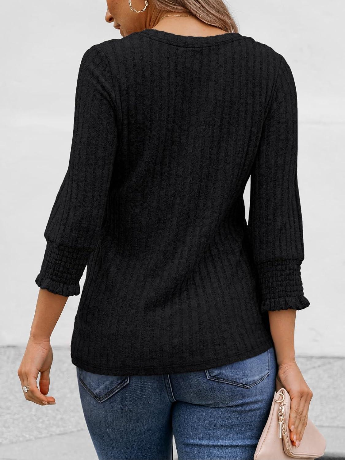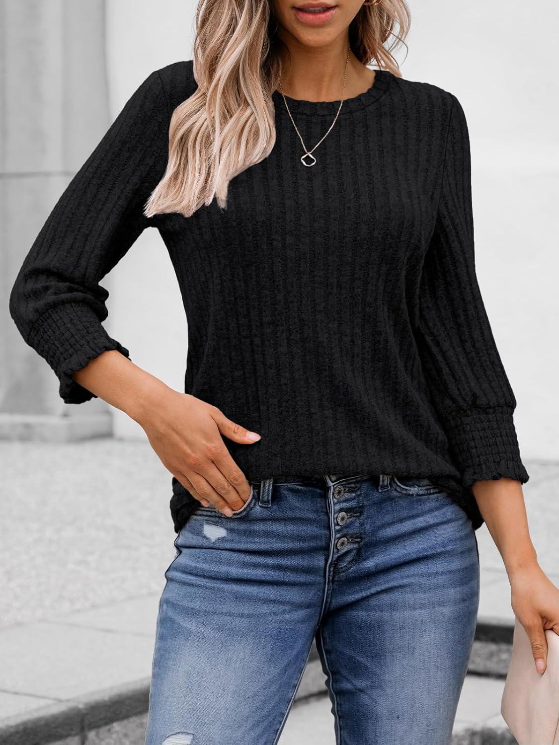 AUTOMET Womens 3/4 Sleeve Tops T Shirts Summer Sweater Round Neck Casual Top Ladies Tops Business Casual Blouses(Black)