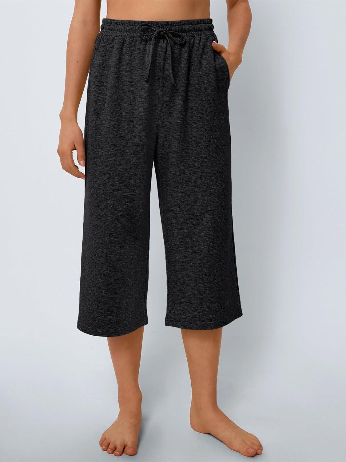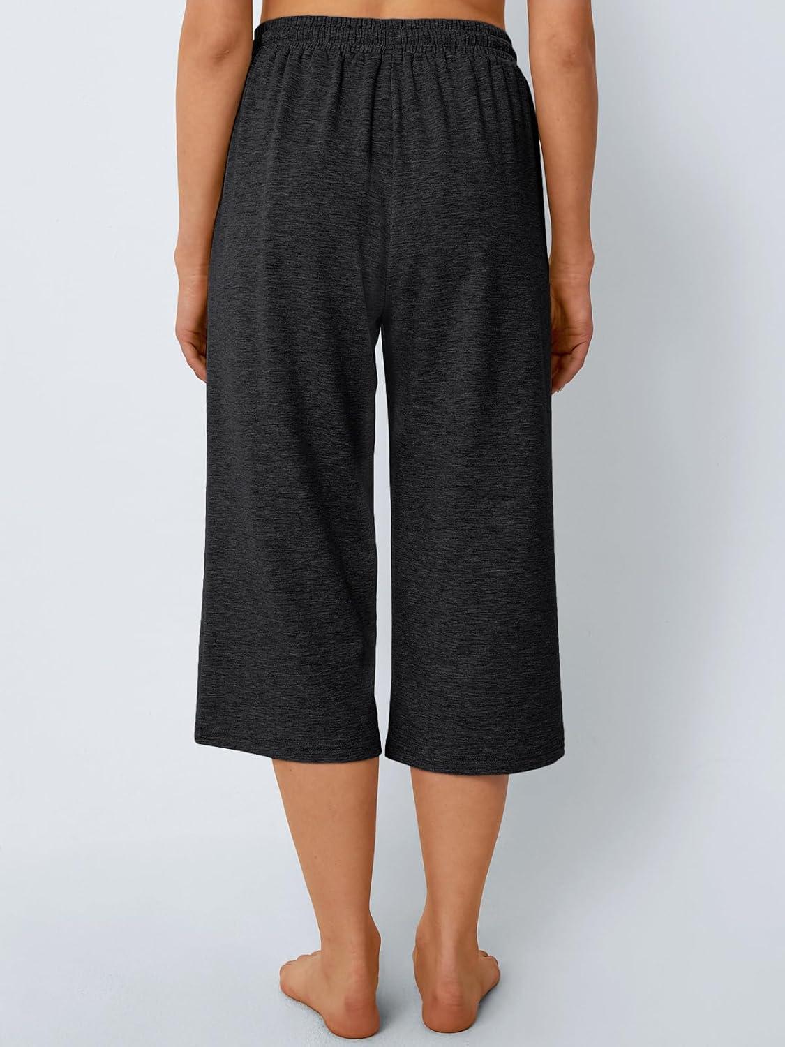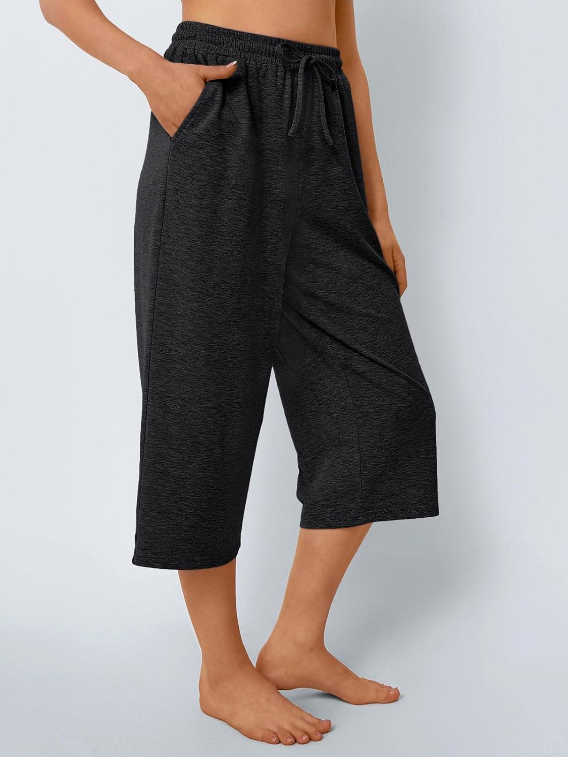 AUTOMET Womens Capris Pants Wide Leg Summer 2025 Sweatpants Drawstring Loose Lounge Palazzo Casual Crop Trouser with Pocket