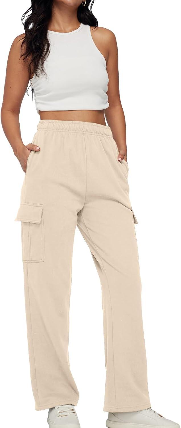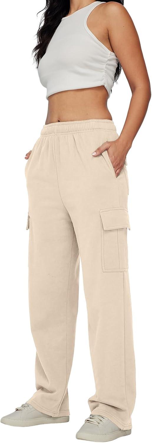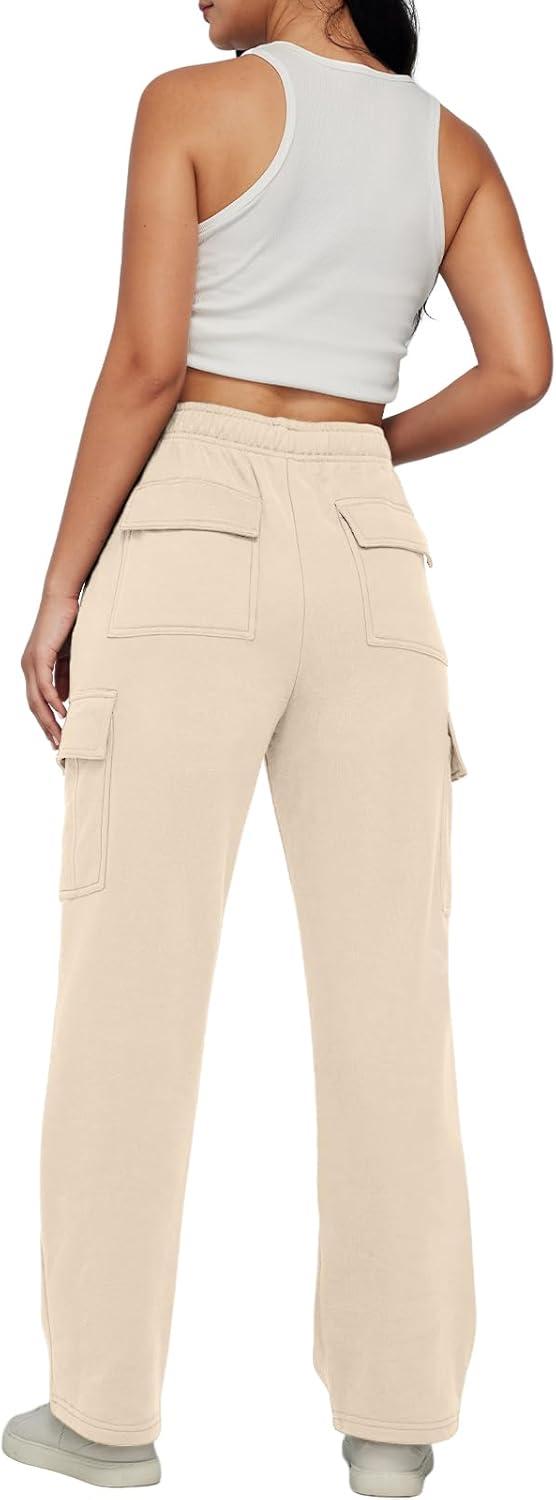 AUTOMET Womens Cargo Sweatpants Baggy Fleece High Waisted Joggers Sweat Pants Athletic Pants(Apricot)