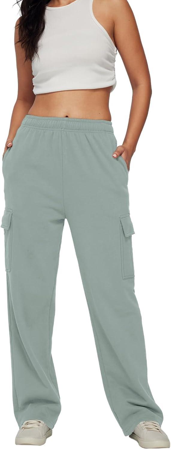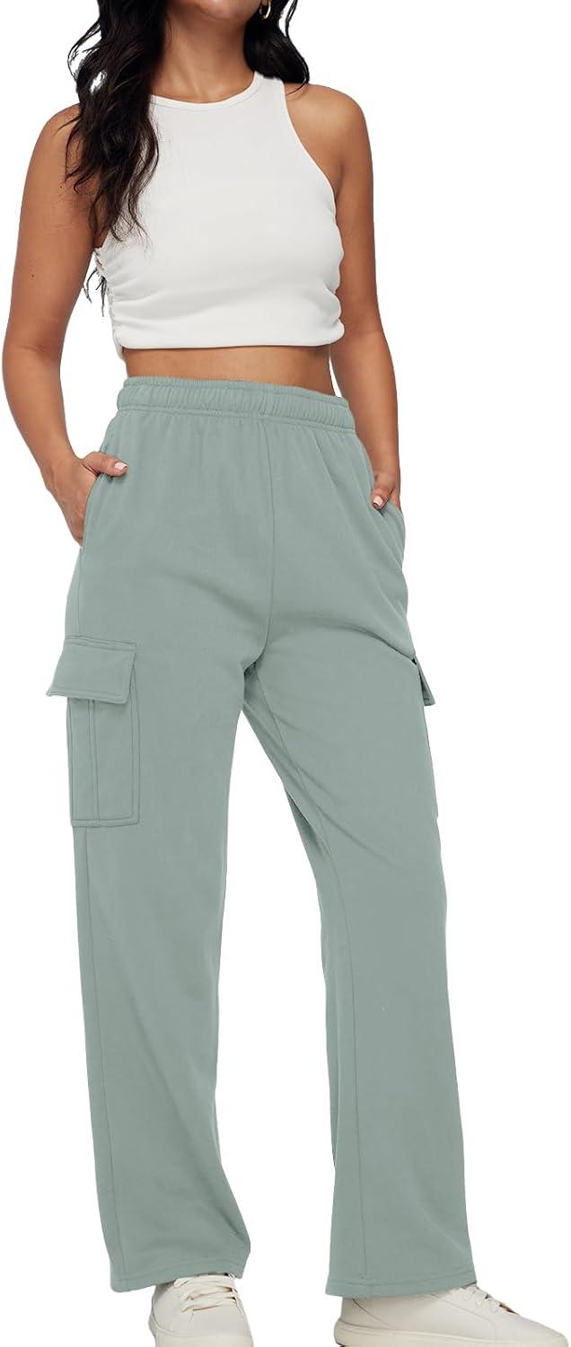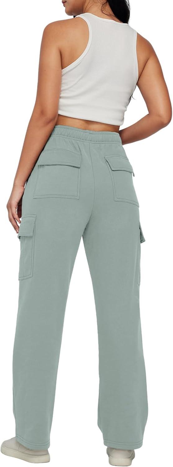 AUTOMET Womens Cargo Sweatpants Baggy Fleece High Waisted Joggers Sweat Pants Athletic Pants(Greygreen)