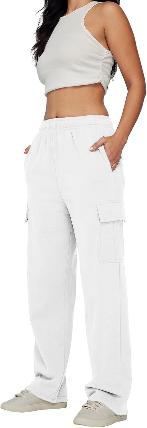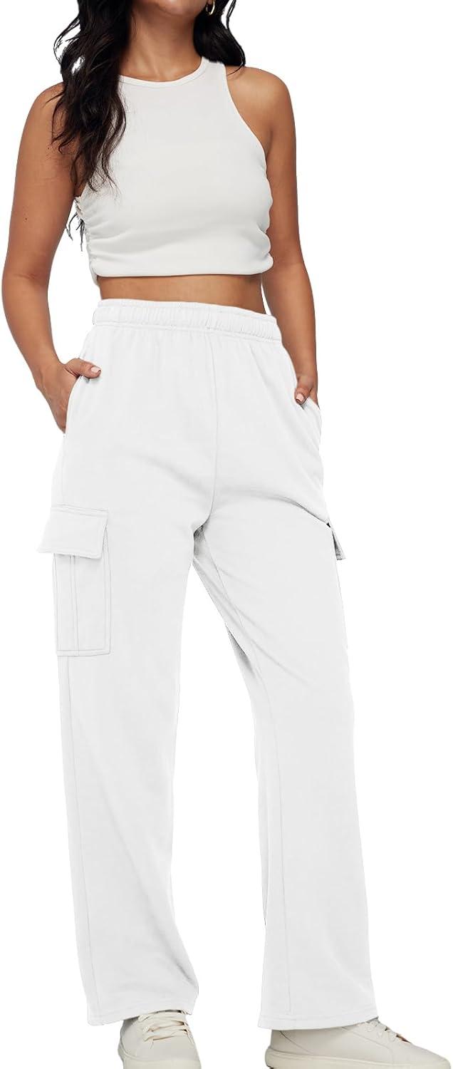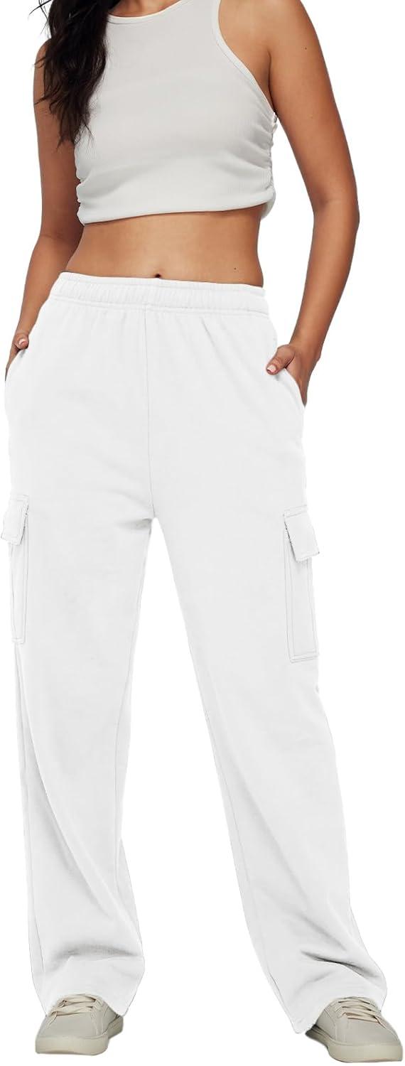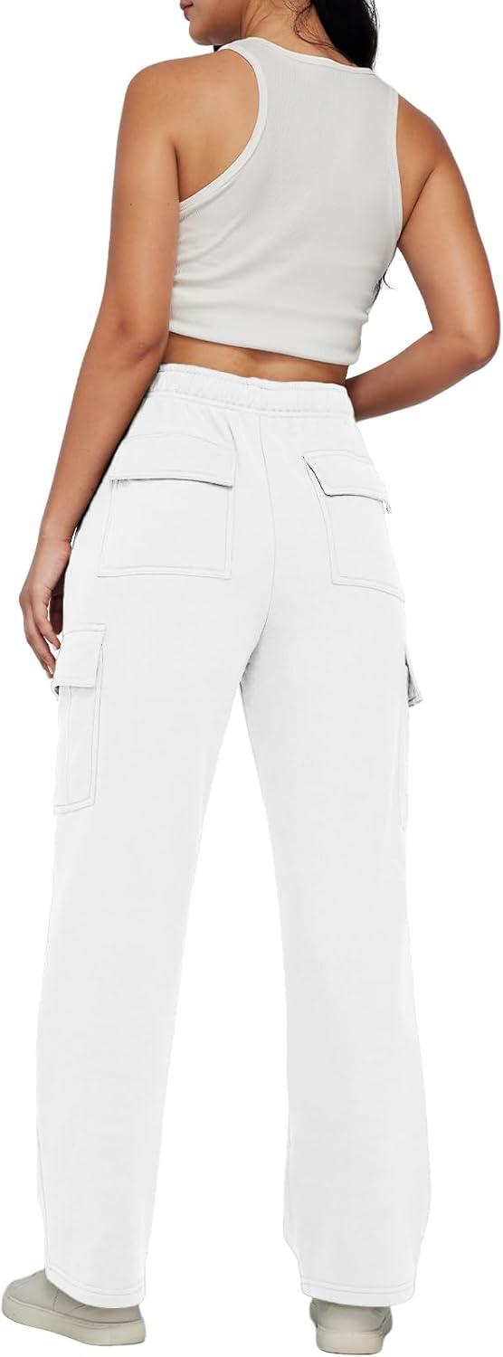 AUTOMET Womens Cargo Sweatpants Baggy Fleece High Waisted Joggers Sweat Pants Athletic Pants(White)