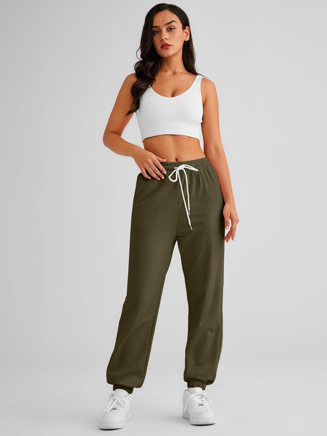 AUTOMET Women’s Cinch Bottom Sweatpants Athletic Joggers Lounge Pants with Pockets(Army Green)